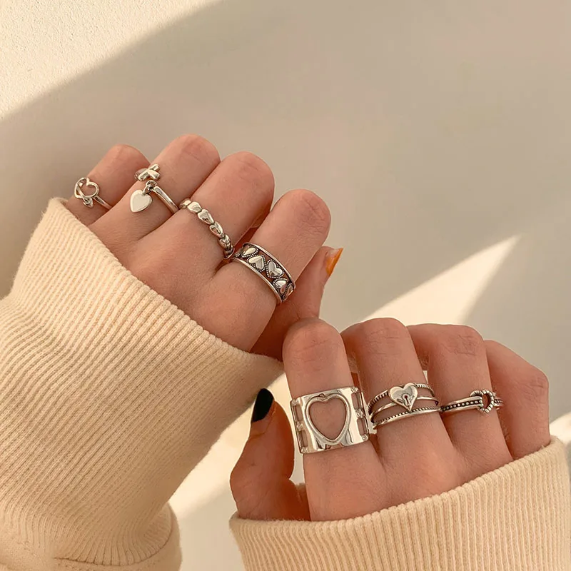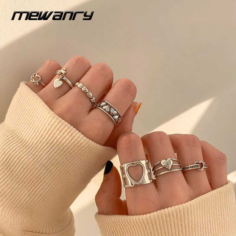 MEWANRY 925 кольца со штампами модные элегантные винтажные парные милые Креативные полые сердца ювелирные изделия для вечеринки Подарки для женщин