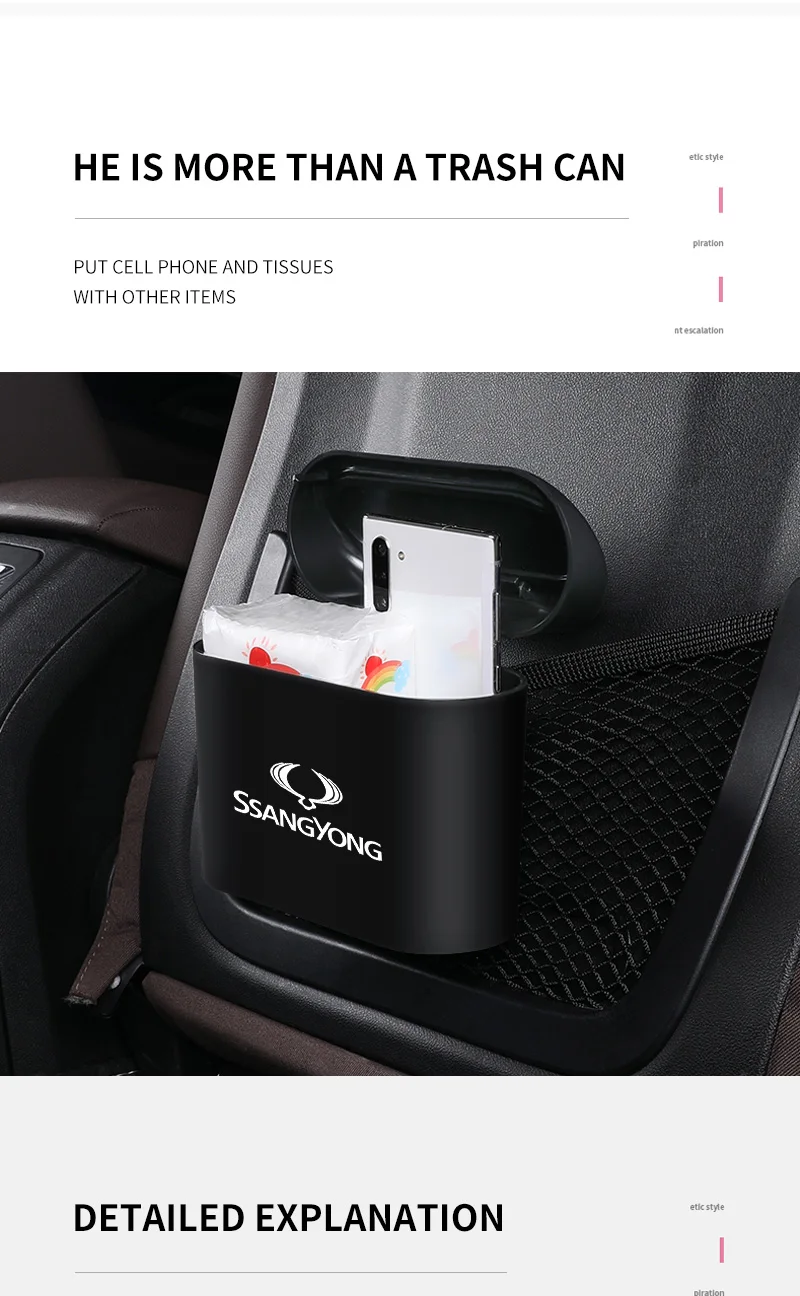 Новинка, стильная пластиковая мусорная корзина для автомобиля, аксессуары для салона автомобиля Ssangyong Rexton 2 Tivolan Musso Tivoli Kyron Actyon Sport Korando