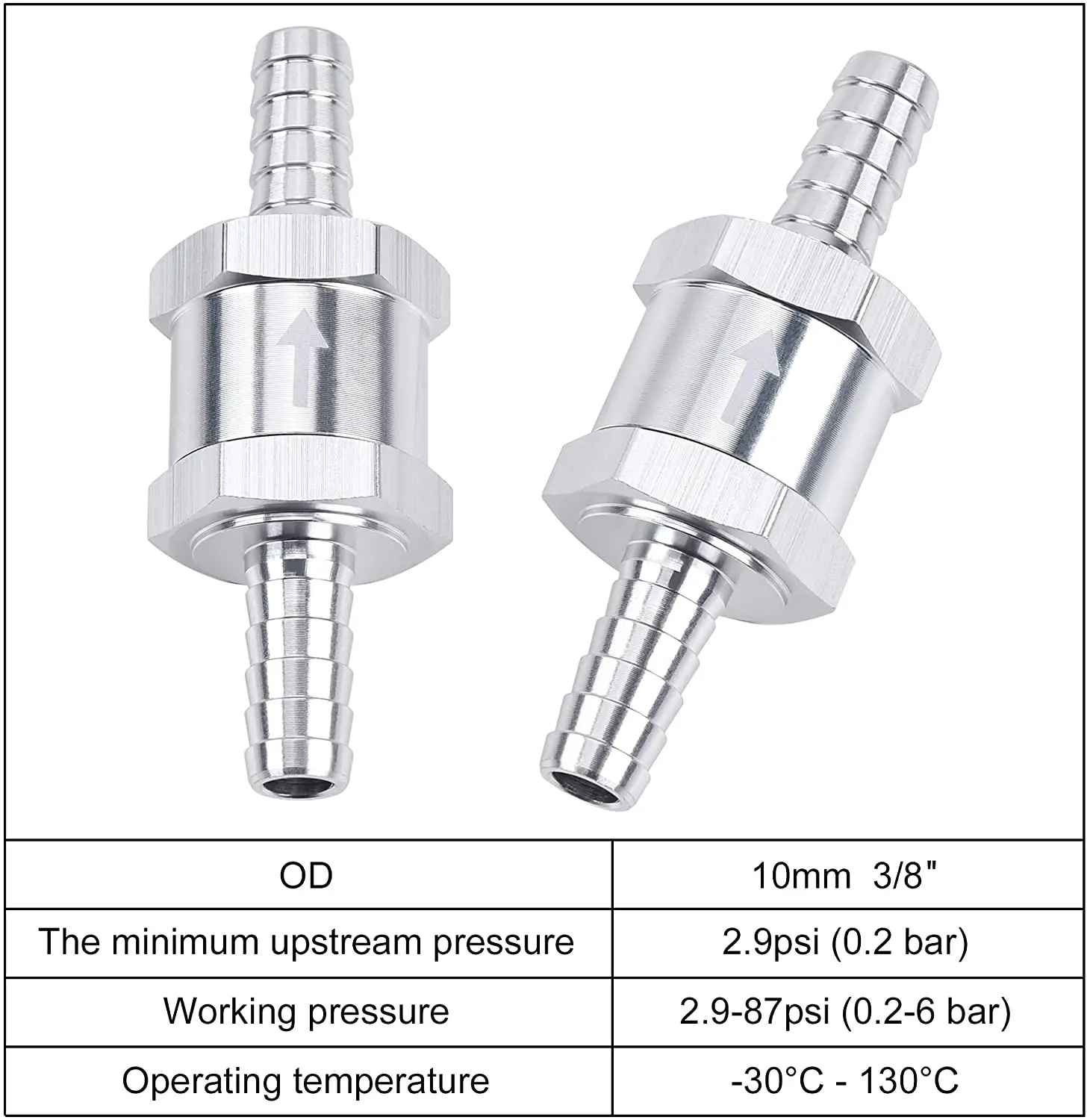 Односторонний обратный клапан для топливной линии, масла, бензина, дизельного топлива, алюминий, 38 дюйма, 10 мм