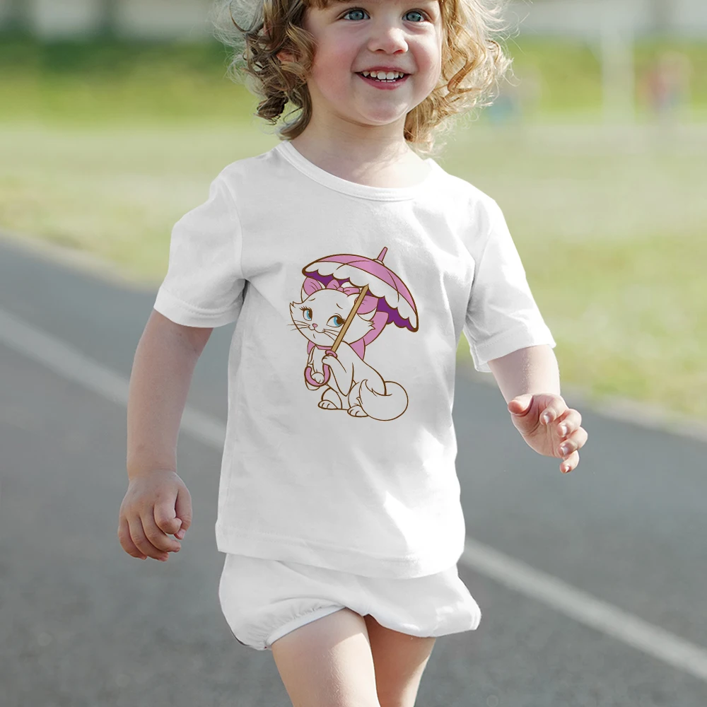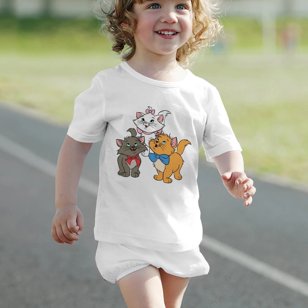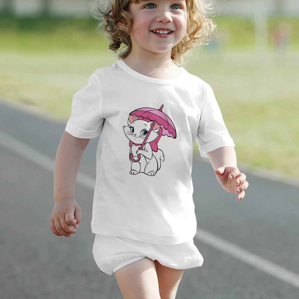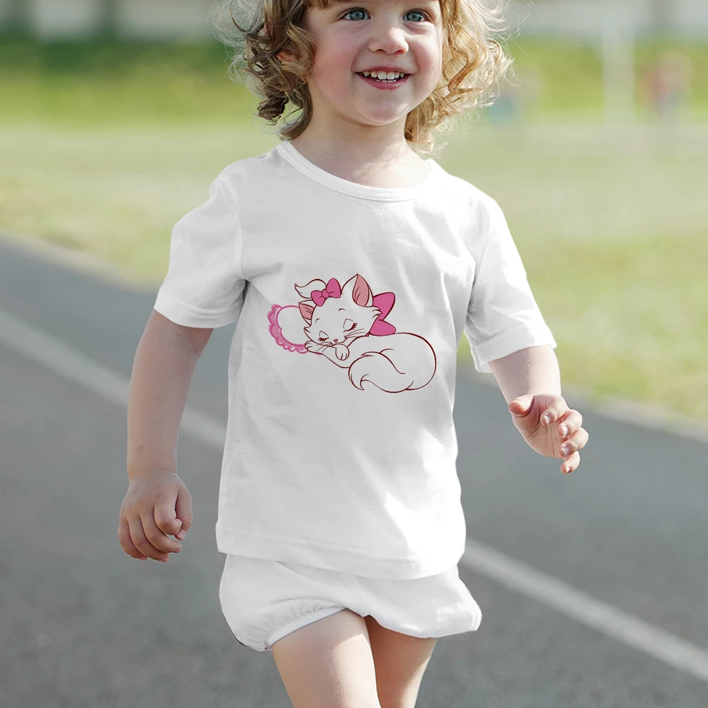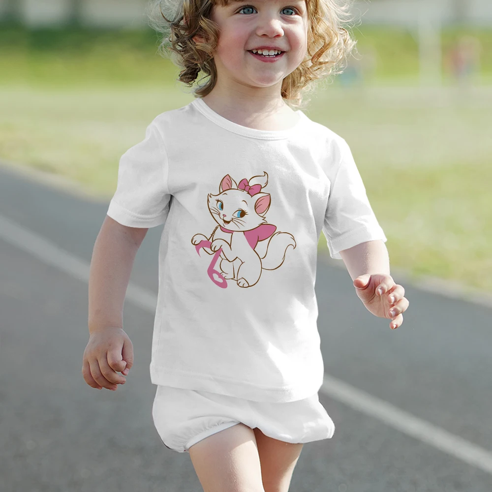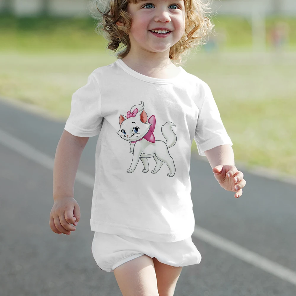 Летняя французская футболка с рисунком Мари и кота для девочек, милая детская мультяшная одежда, футболка для маленьких детей, футболка в стиле Дисней, Харадзюку, в эстетике