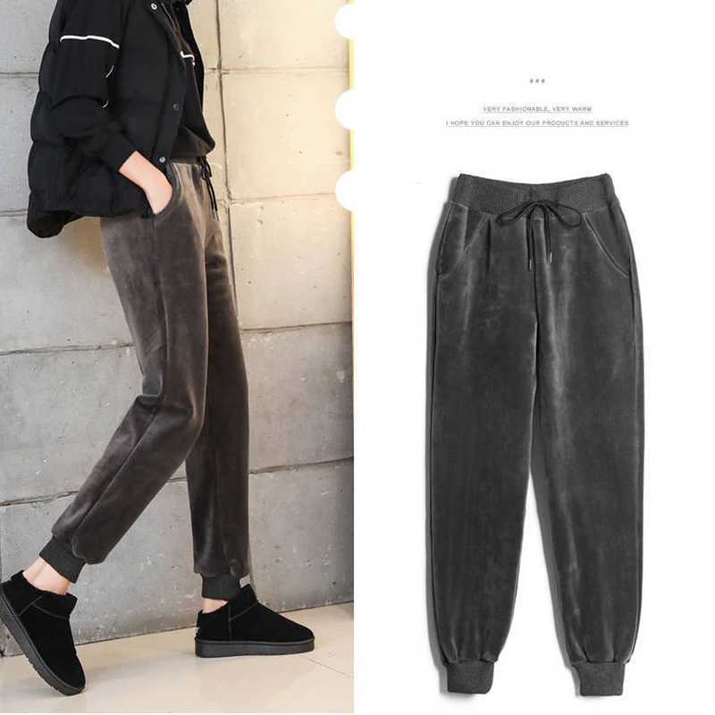 Женские зимние теплые спортивные брюки, плотные брюки, теплые женские длинные брюки, бархатные теплые рабочие брюки, повседневные теплые спортивные брюки