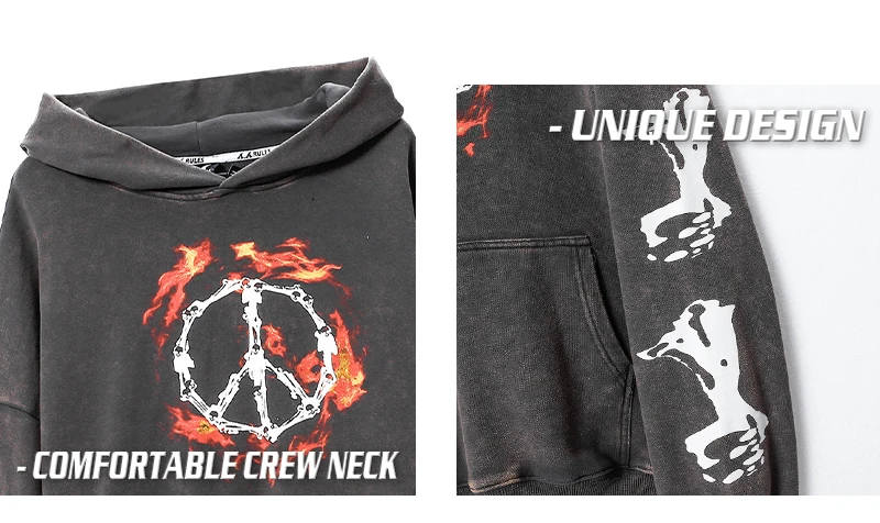 Men Hoodies High Steet Hip Hop Casual Couples Fashion Popular Skeleton Printing Harajuku Unisex Loose Long Sleeve