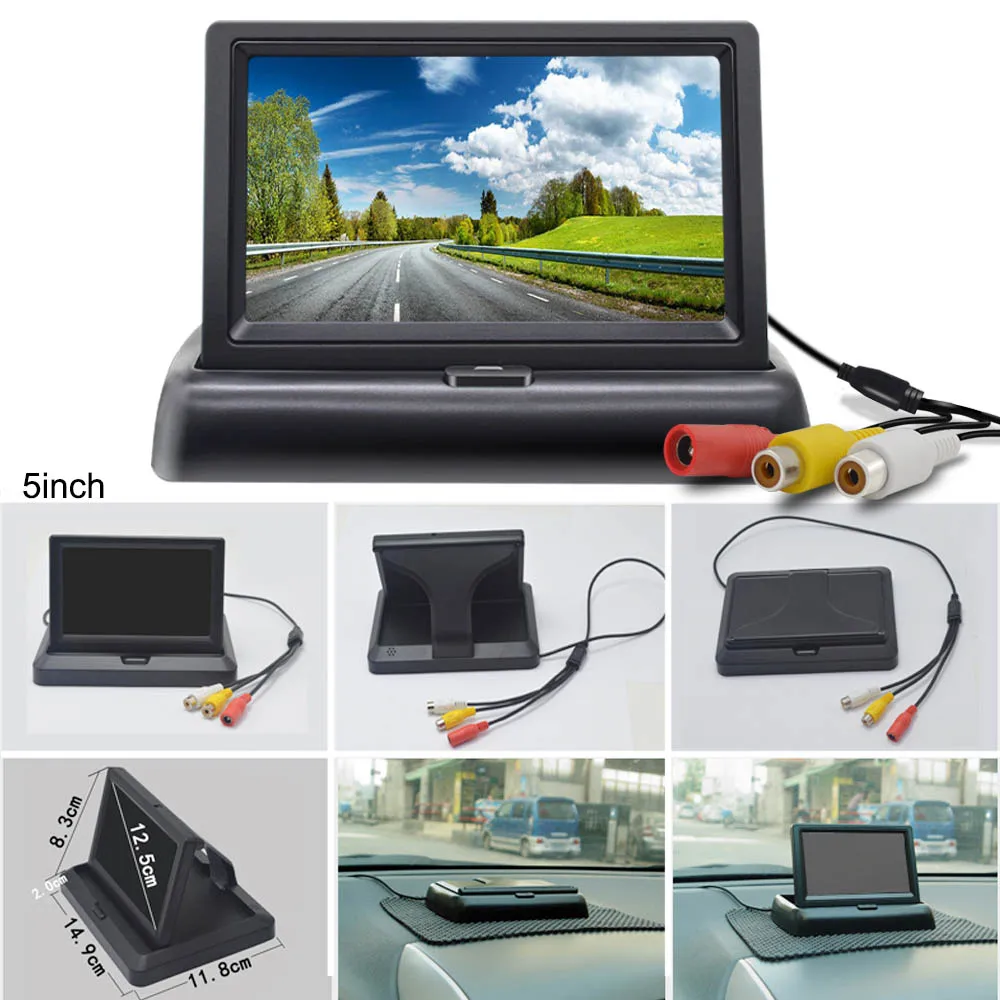 Особенности: Дисплей диагональю 5 дюймов, оттенок дизайн, подарок кронштейн присоски, два вида дисплея, 2 Вход переменного тока, совместимый P / N системы, напряжение: 9-36V, разрешение: 800X480