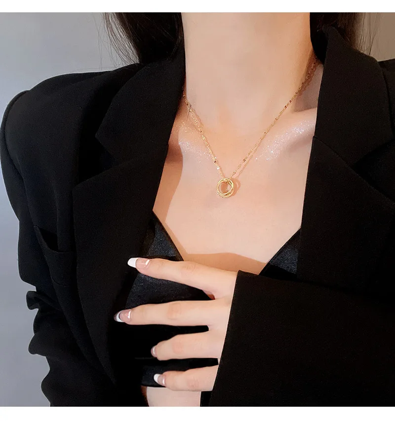 Женское Ожерелье с цирконом, роскошное ожерелье красного цвета с геометрическим дизайном в виде одного круга и с настоящим золотым покрытием, изысканный подарок