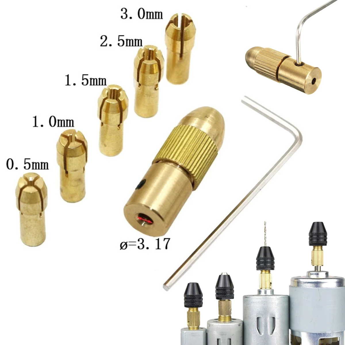 7 шт.компл. 0,5-3,0 мм латунная Цанга Dremel, мини сверлильные патроны для вала электродвигателя, сверлильный инструмент, переходник патрона для дрели, шестигранный ключ