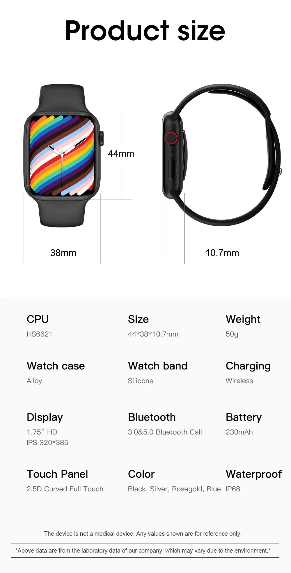 Характеристики часовCPU:W37 pro△Размер: 44*38*10,8 мм△Weight:50 гCharger Зарядное устройство: Магнитный△ Экран: 1,75 дюймов TFT Экран, 320*385 пикселейTouch Сенсорная панель: несколько касанийBattery Батарея: литий-ионный полимерный аккумулятор 230 мАч, 150 минут для полной зарядкиBluetooth:BT3.0 + 5,0△ 2 кнопки.△Waterproof: Водонепроницаемость в течение всего срока эксплуатацииНе использовать в горячей воде или саунеФункция часов● Bluetooth-вызов и ответ● DIY часы dail● Книга звонков● Push-сообщение● Сплит-экран● Измерение пульса и артериального давления● Запись сна● Запись спортивных данных● Будильник, секундомер, управление музыкой, калькулятор, удаленная фотография, защита паролем и т. д.ЯзыкиЯзыки часов:Китайский, традиционный китайский, английский, арабский, французский, немецкий, испанский, португальский, русский, тайский, польский, итальянский, японский, турецкий, греческий, вьетнамский, иврит, персидскийЯзыки приложения:Китайский, традиционный китайский, английский, французский, немецкий, японский, испанский, итальянский, корейский, русский, тайский, чешский, португальский, индонезийский, арабский, турецкий, греческий, эстонский, болгарский, латышский, литовский, румынский, сербский, словацкийЭкран1,75 дюймовый HD экранРазрешение 320*385 пикселейНасыщенность цвета 80%Особенно в черном фоне и весь интерфейс интегрирован с каймой почти так же черный, как дисплей AMOLED.