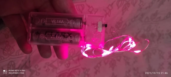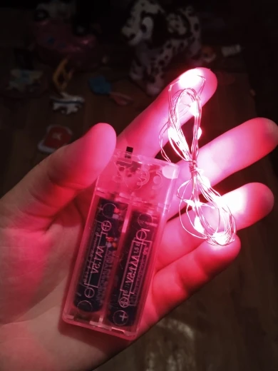 Гирлянда качественная, светит ярко. Питание от 2 батареек АА. Поначалу продавец ссылался на ошибку и не хотел отправлять товар, но всё же отправил.