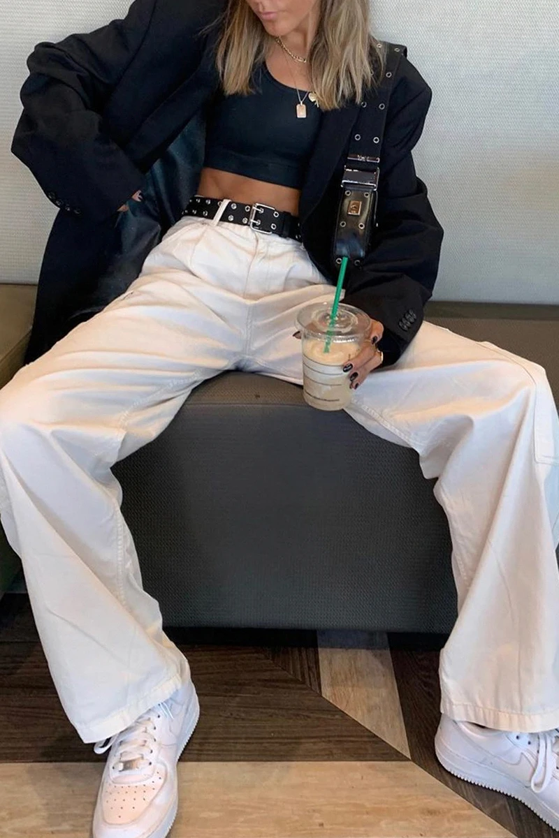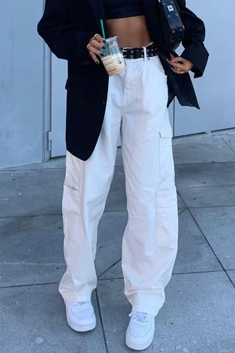 Белые уличные брюки с высокой талией, джинсы-бойфренды с прямыми шт...