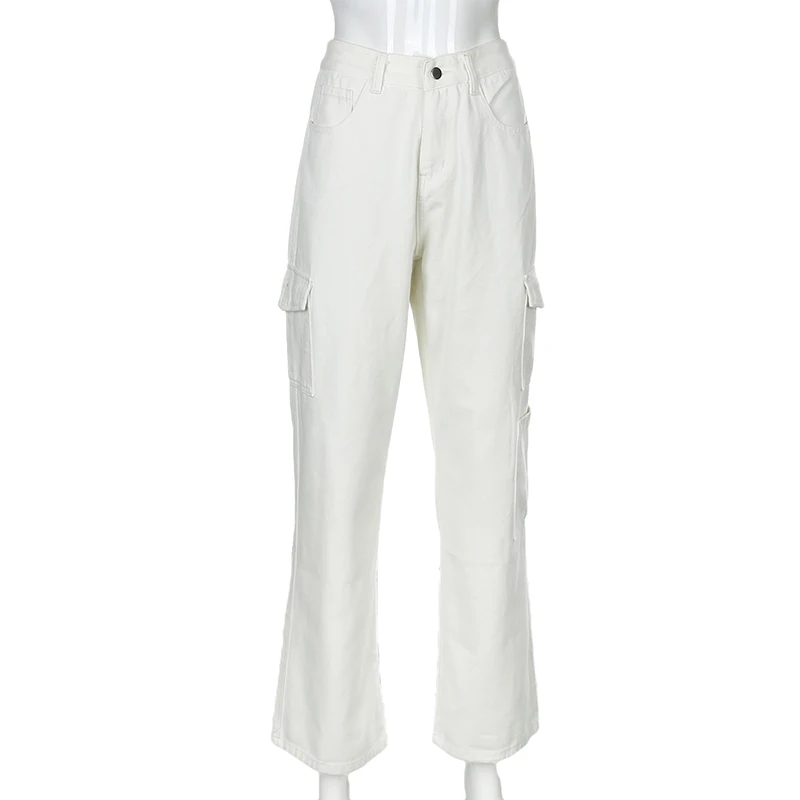 Женские джинсы в стиле High Street Y2K, повседневные прямые джинсовые брюки-карго с завышенной талией и карманами с клапаном, джинсы для мам, джинсовые брюки с широкими штанинами