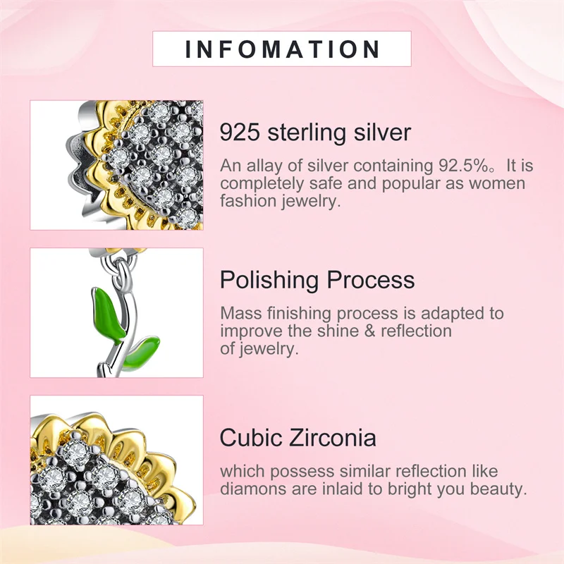 1 шт желтый Подсолнечник завод браслет амулеты 925 пробы Серебряный подходит оригинальный браслет Пандора Подсолнух золотые амулеты женские подарки Упаковка:1 шт. Шарм