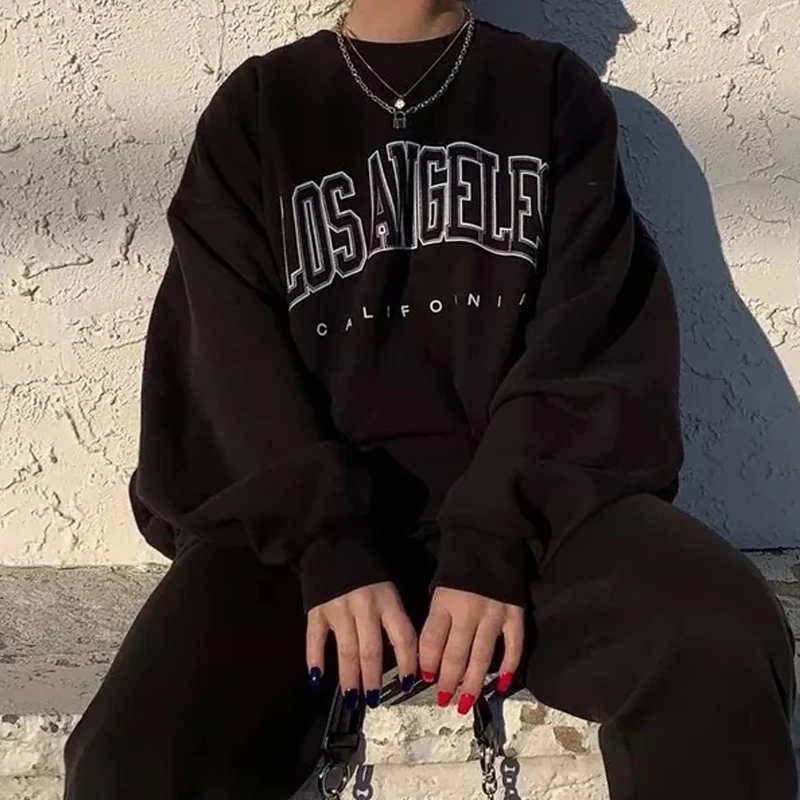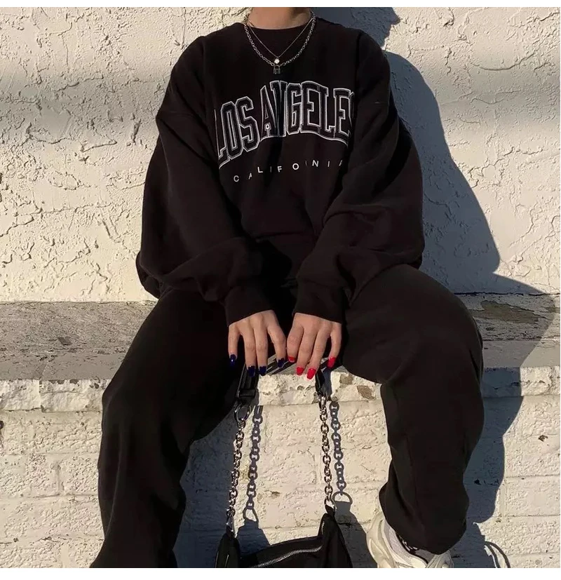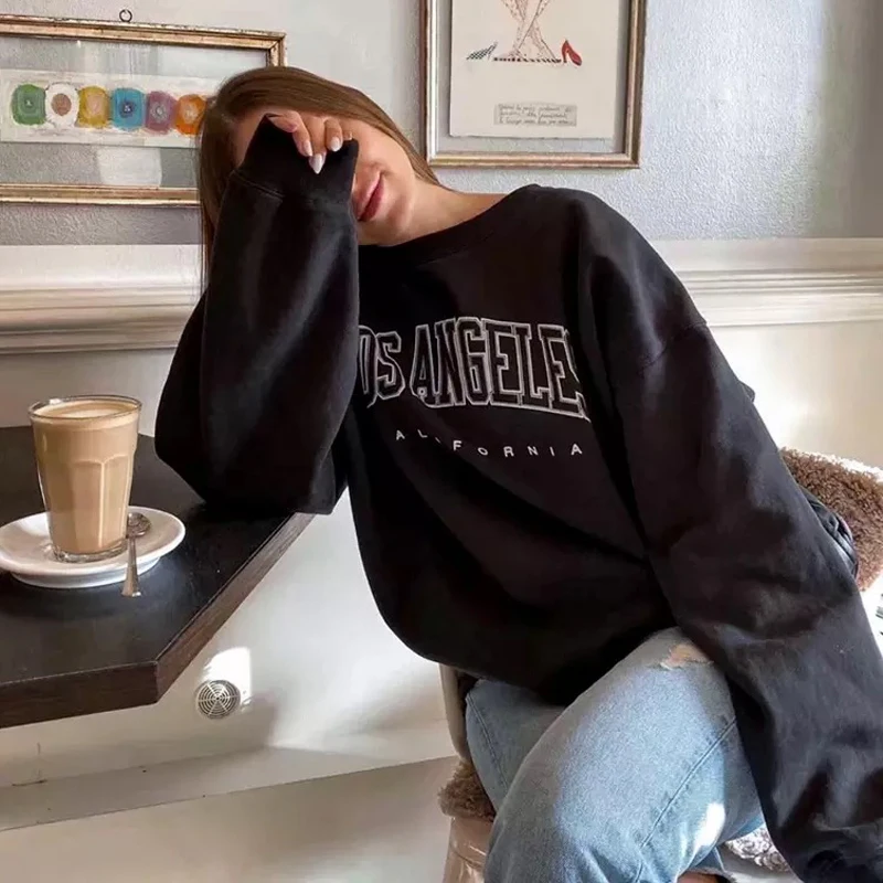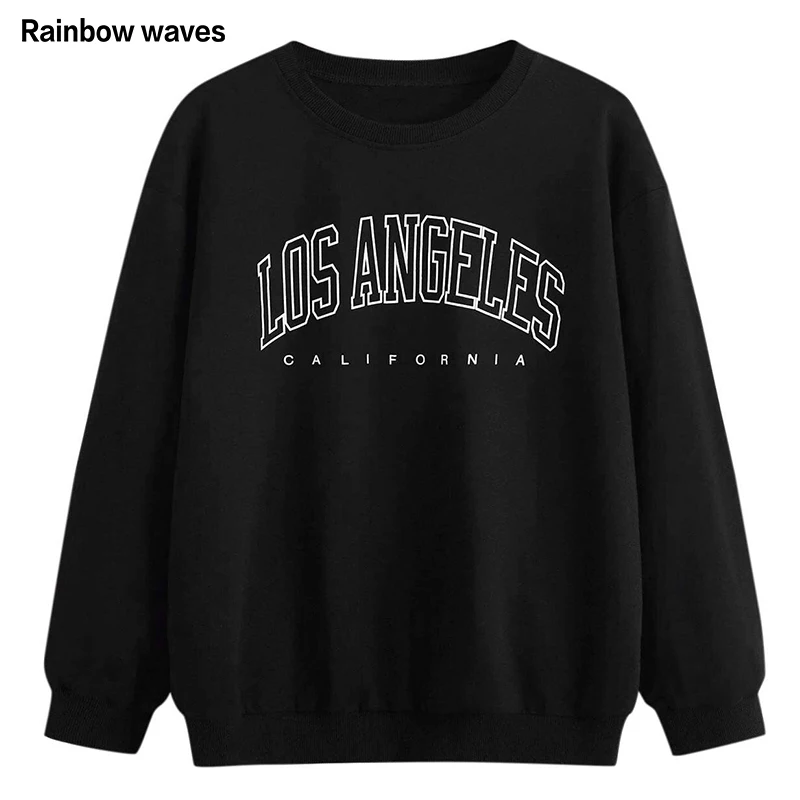 Женский свитшот с длинным рукавом Rainbowwaves, лидер продаж, модная повседневная одежда, пуловеры оверсайз, черные топы