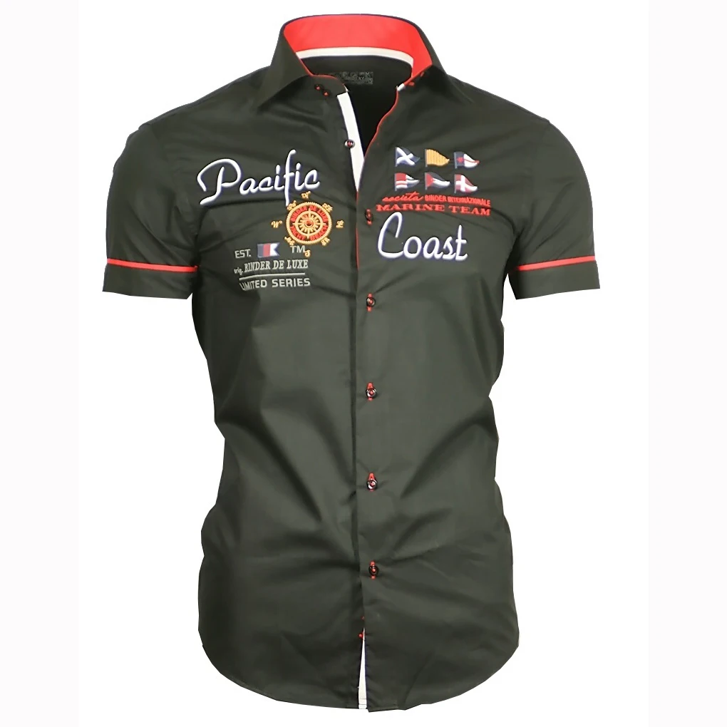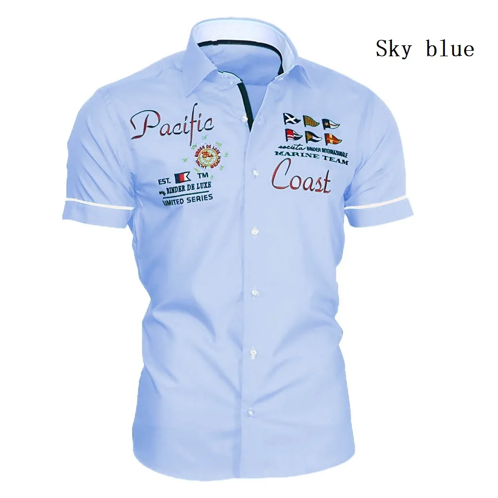 Рубашка ZOGAA Мужская универсальная, повседневная Молодежная шикарная блуза с отложным воротником, стильная модная с коротким рукавом для мальчиков