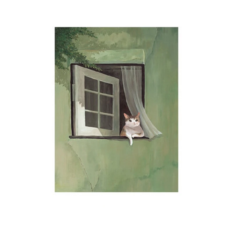 Красивая ручная роспись, Зеленый пейзаж, ваза, газон, кот, дом, постер, настенное искусство, холст, живопись, картины для гостиной, домашний декор