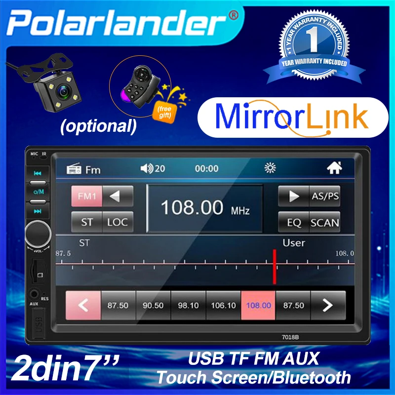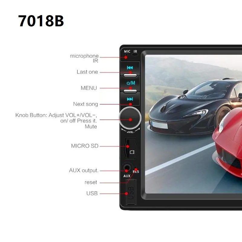 Автомагнитола 2 DIN с сенсорным экраном 7 дюймов, Bluetooth, USB, TF, FM, AUX