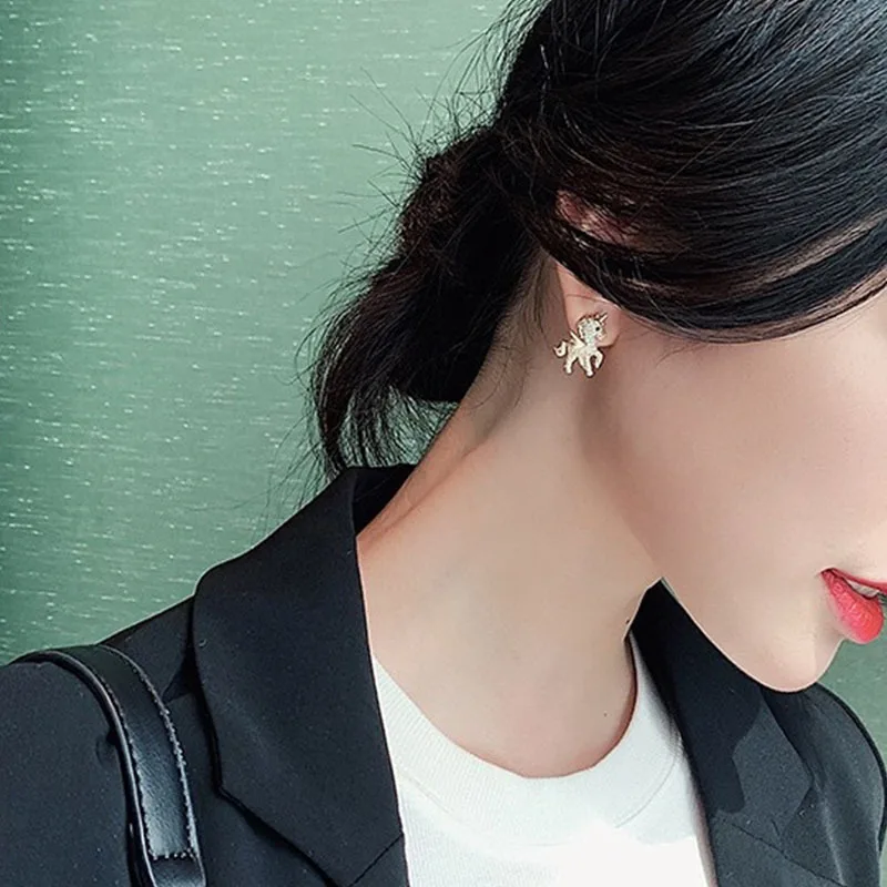 Милые серьги-гвоздики в виде единорога для женщин, серьги в виде ск...