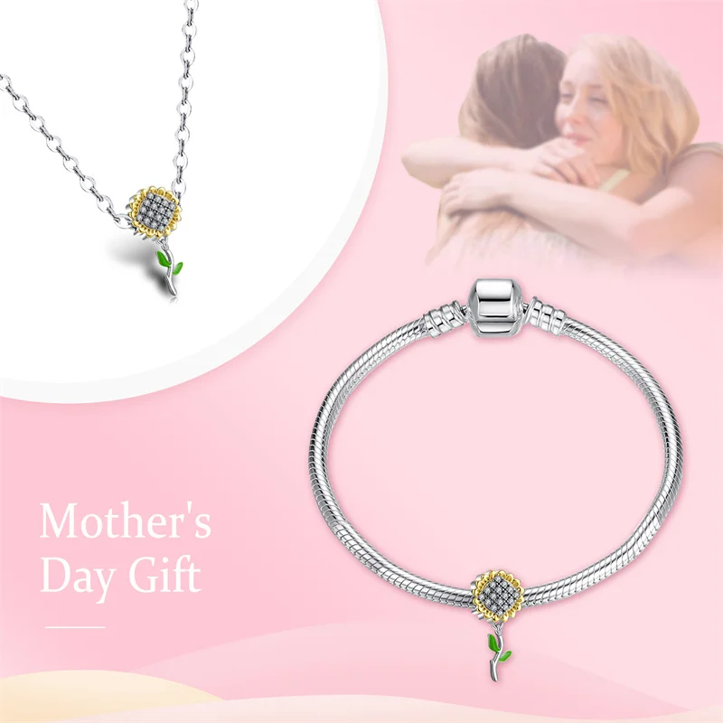 Подвески для браслета с растениями, серебряное покрытие, желтый подсолнух, подходят для оригинального браслета, Подсолнухи, золотые подвески, подарки для женщин