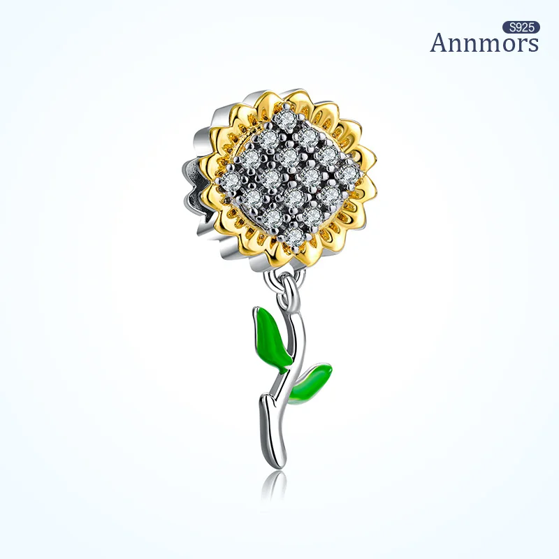 1 шт., браслет для растений, подвески, серебряное покрытие, желтый подсолнух, подходит для оригинального браслета Pandora, Подсолнух, золотые подвески, подарки для женщин Упаковка:1 шт. Шарм