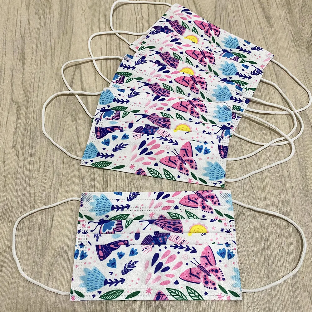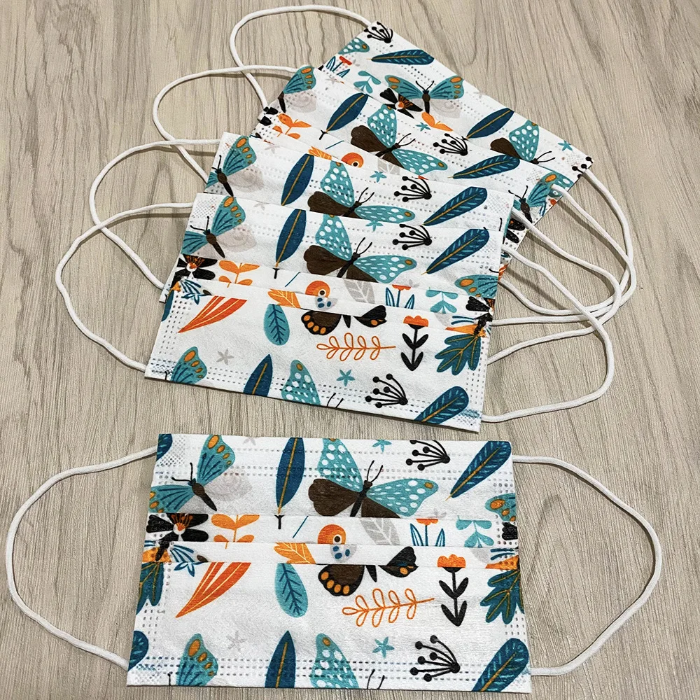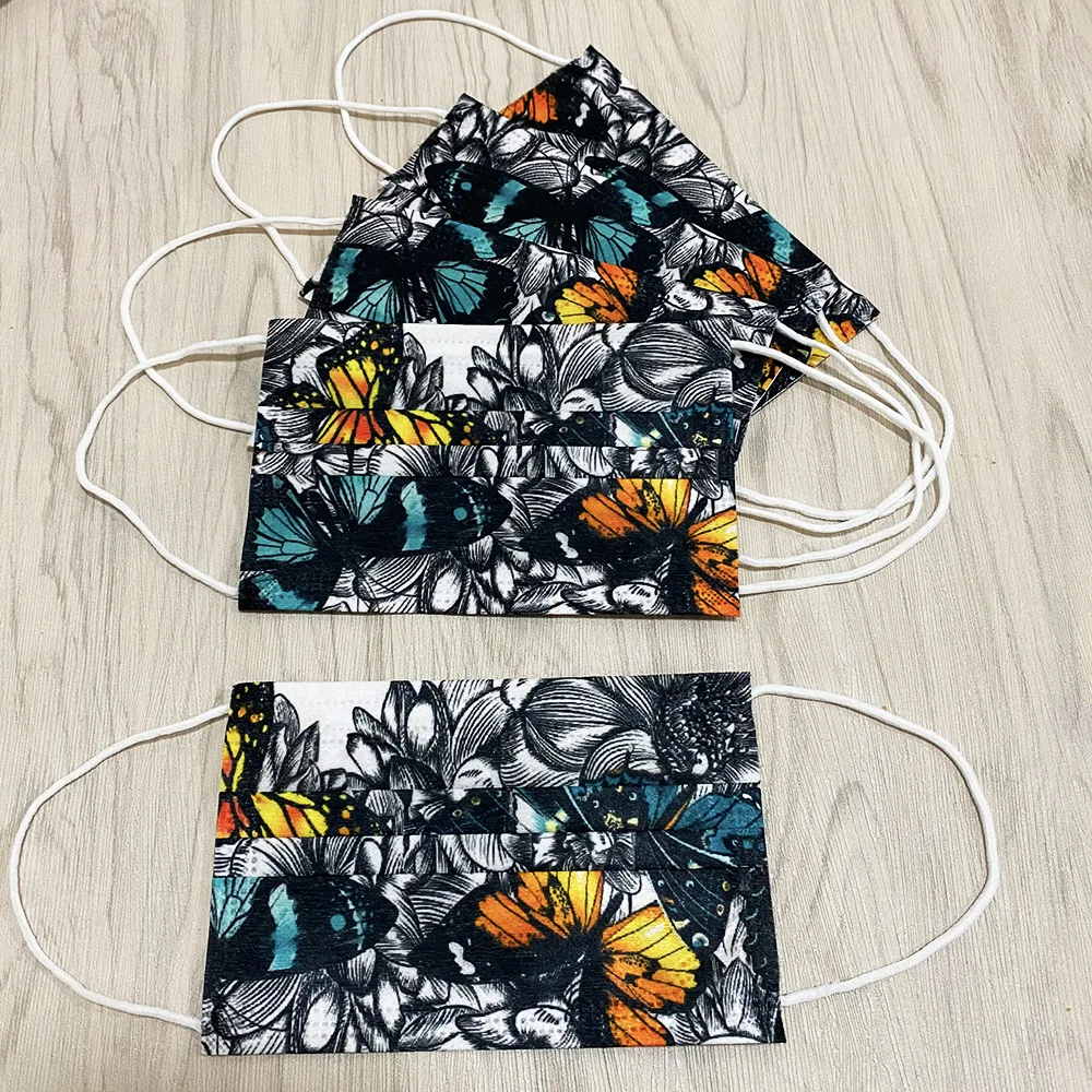 50 шт., одноразовые противовирусные маски для лица с цветочным принтом
