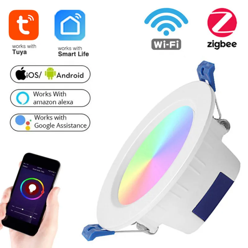 Умный светодиодный потолочный светильник Tuya Zigbee, лампа с регулируемой яркостью, RGB + CW, комнатное умное точечное освещение, работает с Alexa Google Home, 3,0