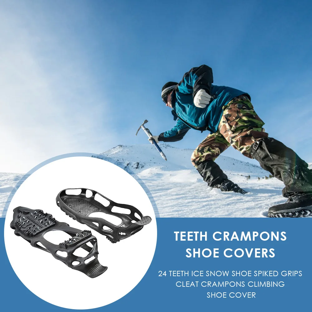 24 зубные шипы, ледяные снежные захваты, походные шипы, скобы, нескользящая обувь для обуви, снегоходы, Пешие прогулки, скалолазание, альпинизм, Спорт на открытом воздухе, черный