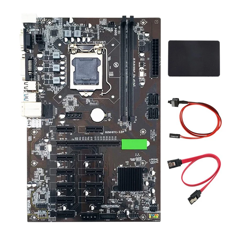 Материнская плата B250 BTC для майнинга 12 PCIE 16X, графическая карта LGA1151 с SATA SSD120G + кабель переключения, поддержка DDR4