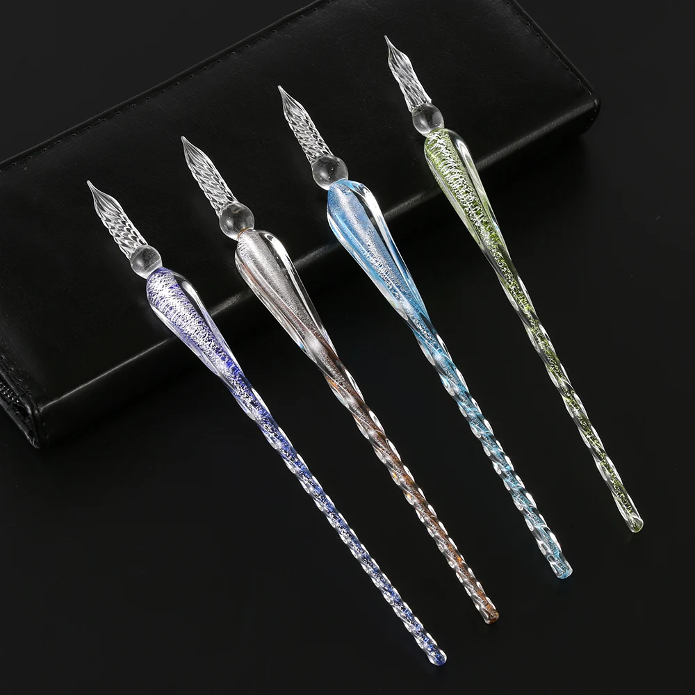 Винтажные стеклянные капельные авторучки ручной работы, перьевые ручки с наполнителем и чернилами для подписей, рисования, погружения в воду, безопаспосылка, 1 шт.