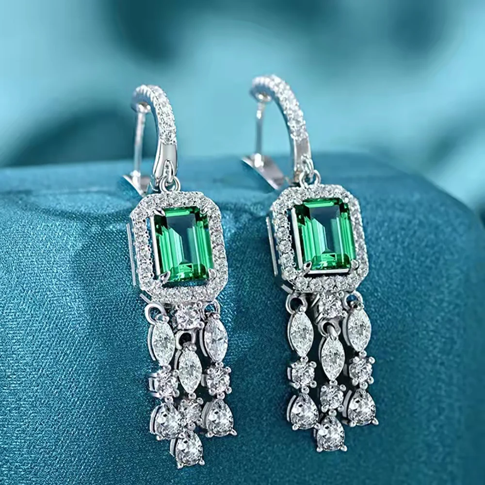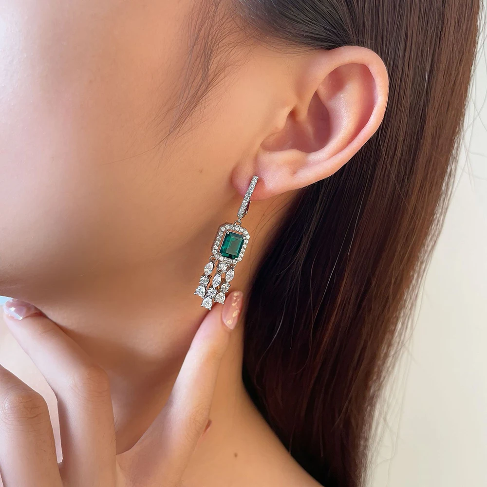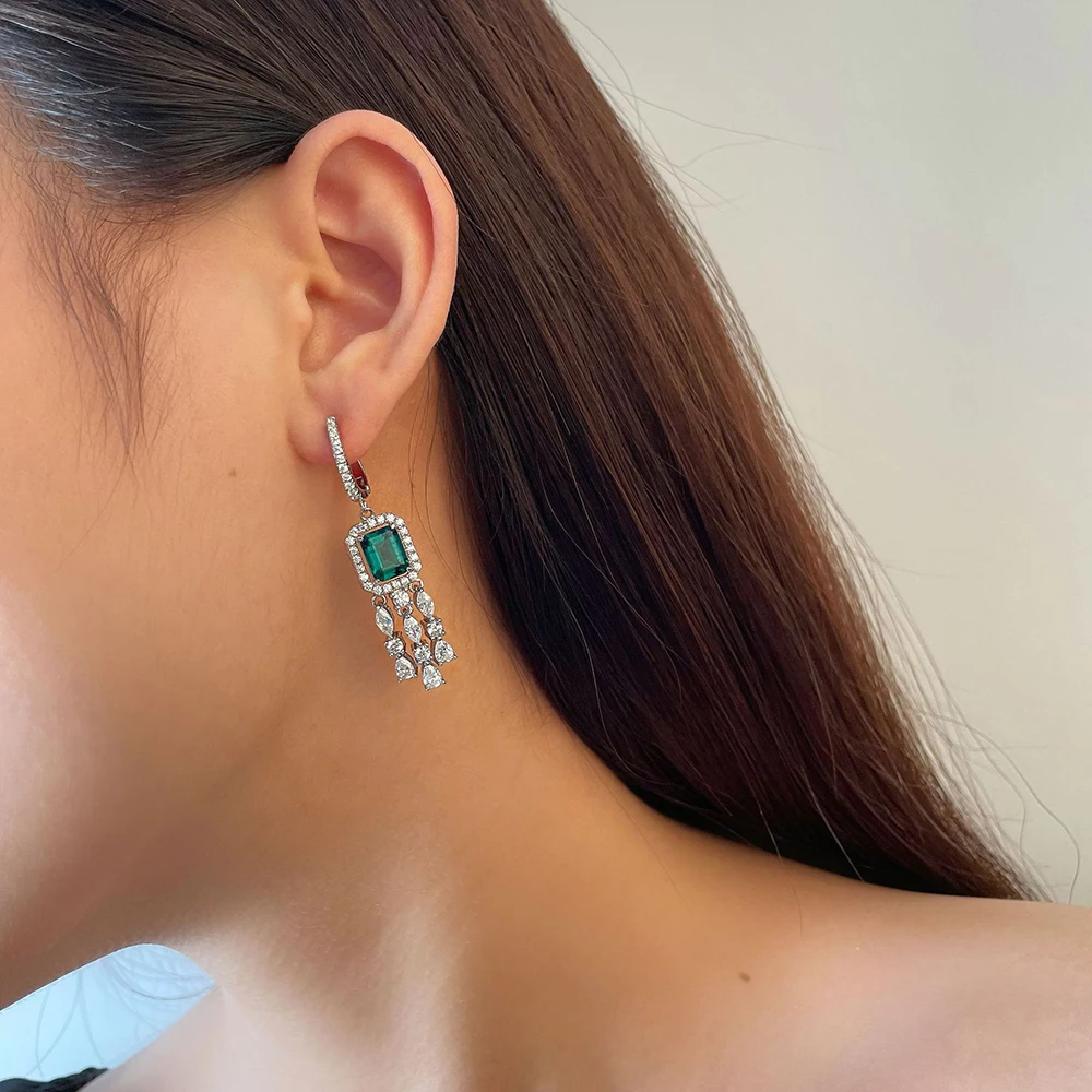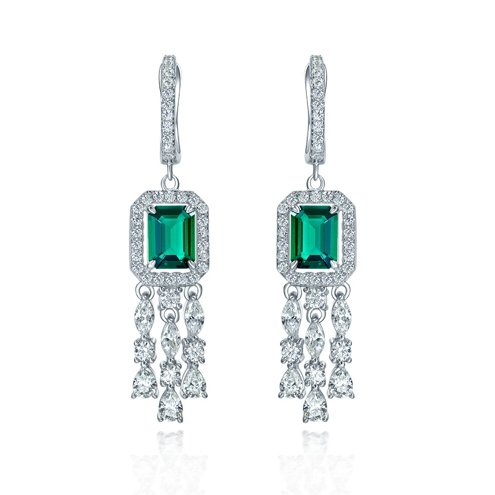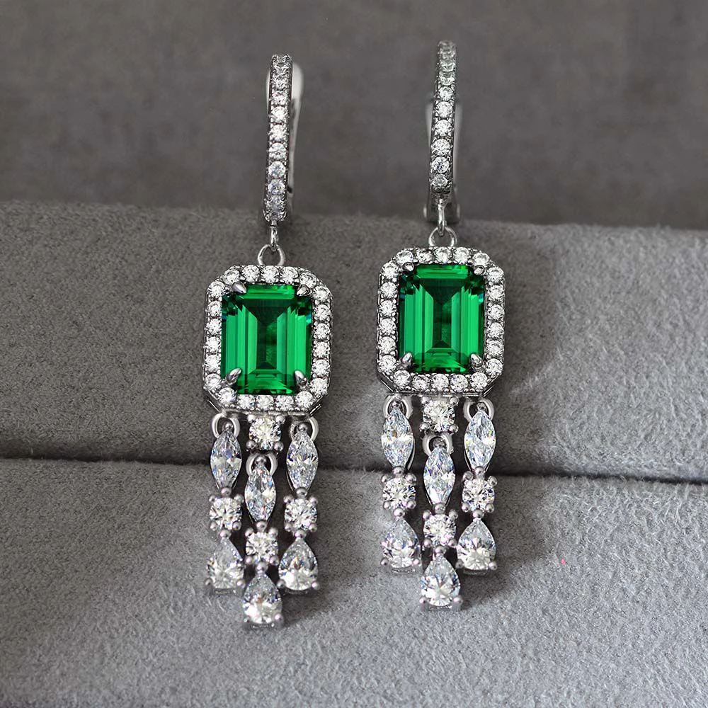 Серьги-подвески женские из серебра 100% пробы с изумрудами, 6 х8 мм