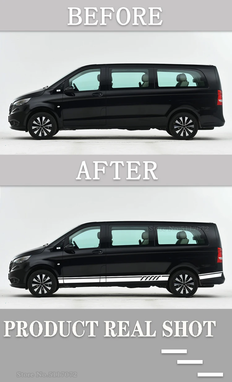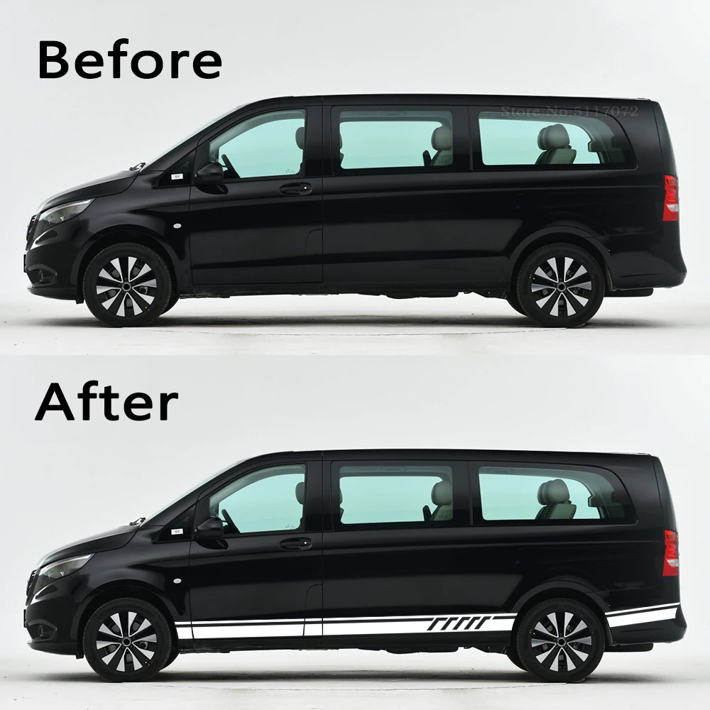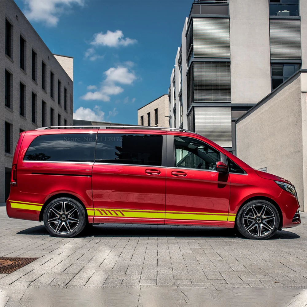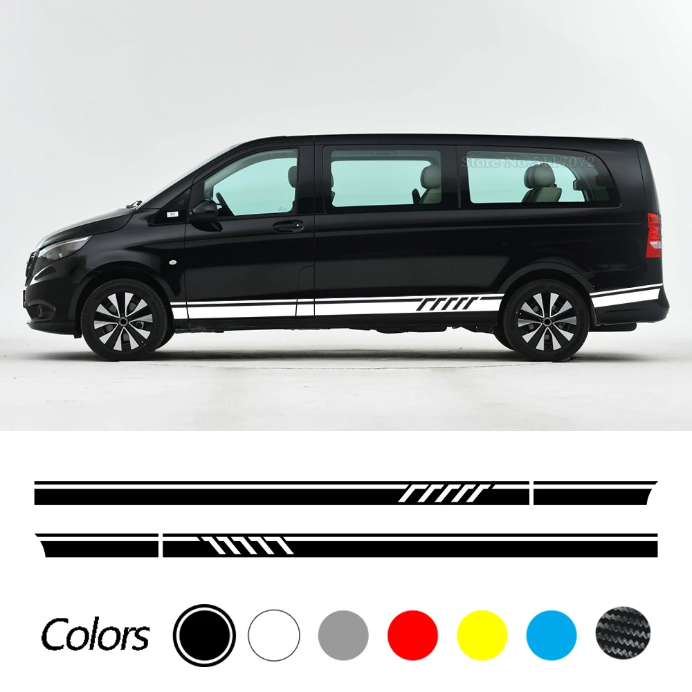 2 шт., наклейки на дверь автомобиля, юбка, 507, стильные полосатые наклейки для Mercedes Benz Vito V Class W447 W639 V260 V260L SWB LWB, аксессуары