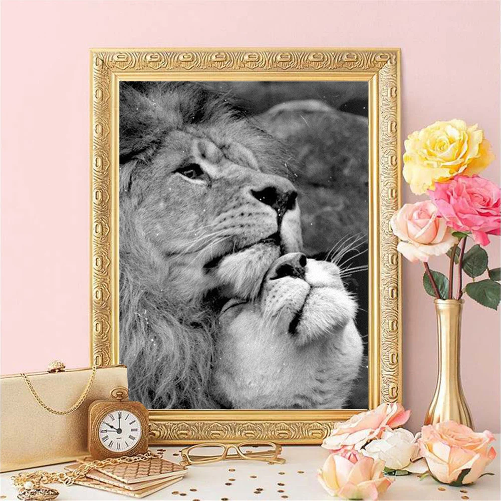 Алмазная живопись HUACAN, полноразмерная мозаика сделай сам в виде льва, черного и белого цветов, животное, Декор для дома