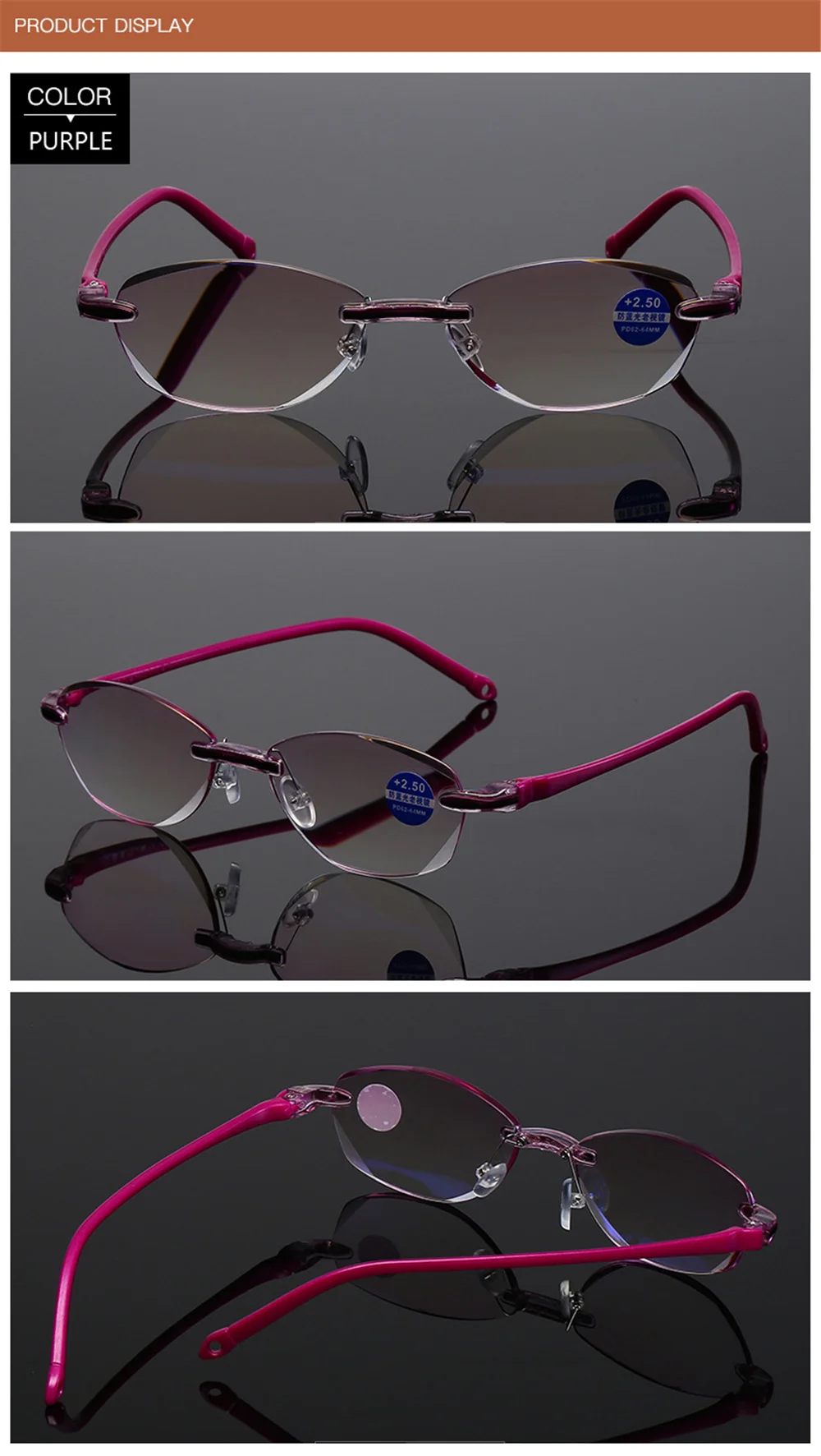 Features 2Blue Light Blocking Rimless Reading Glasses