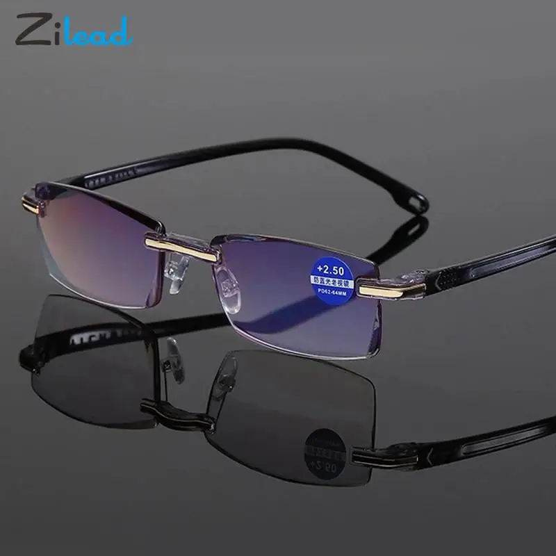 Zilead мужской анти-синий светильник без оправы очки для чтения винтажные женские мужские компьютерные пресбиопические очки диоптрий + 1,0 1,5 2 2,5 4,0