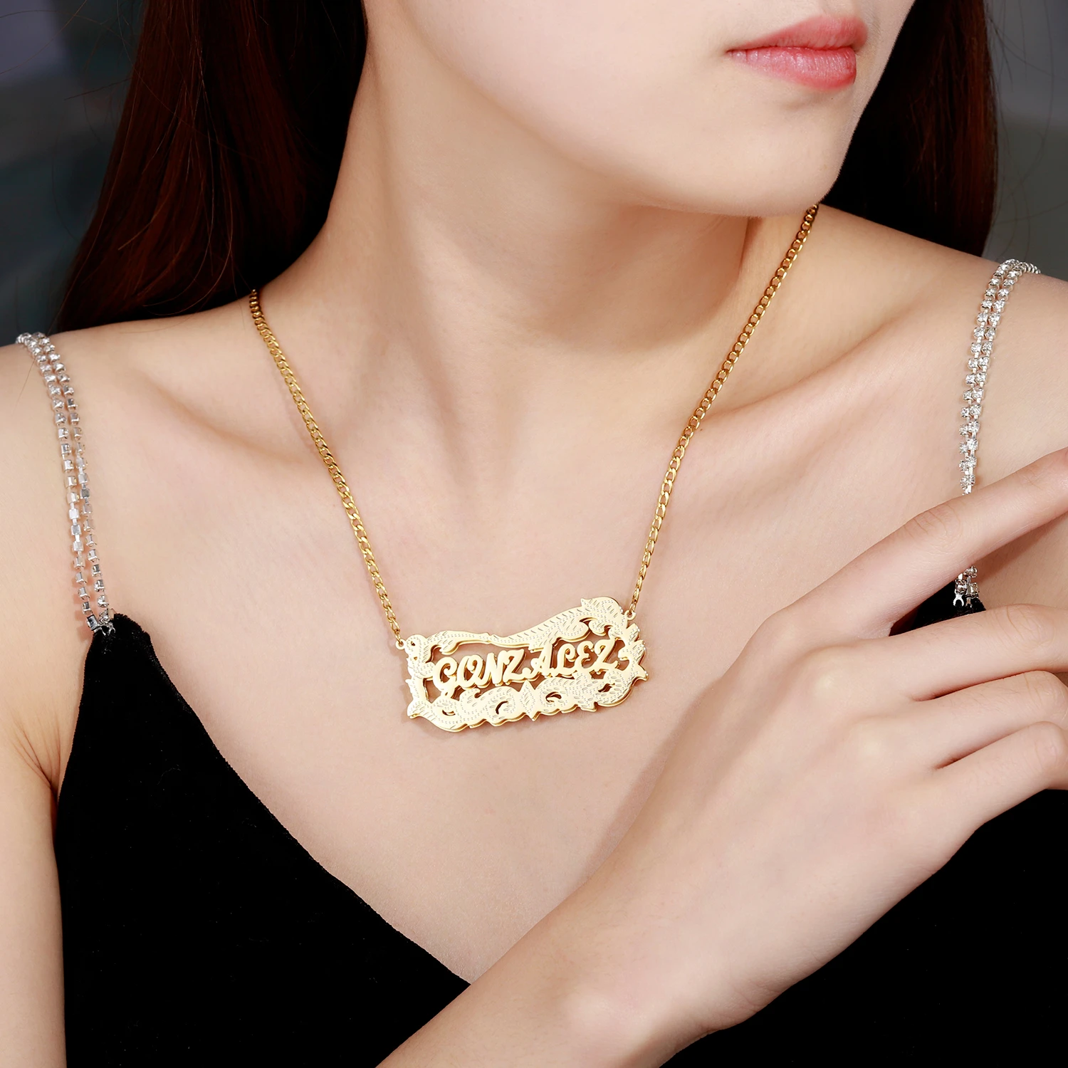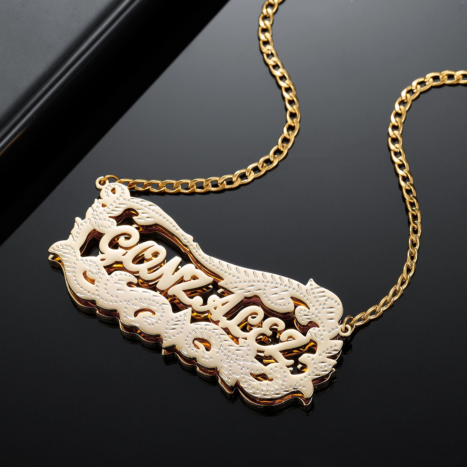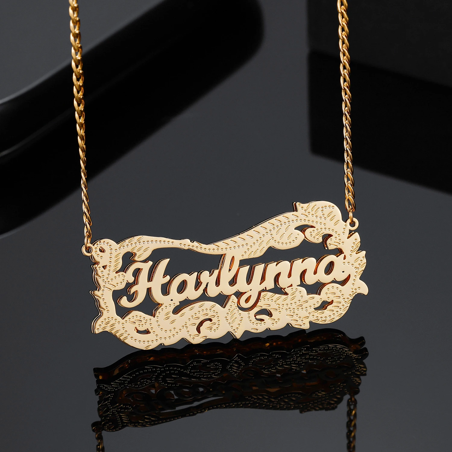 18K позолоченная желтая индивидуальная 3D двухименная цепочка стандартное ожерелье с цепочкой для женщин индивидуальный 3D ювелирный подарок