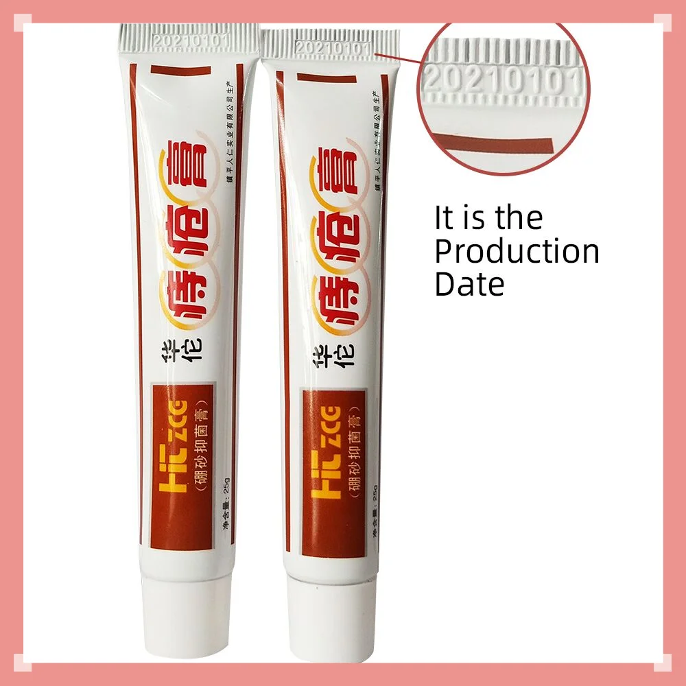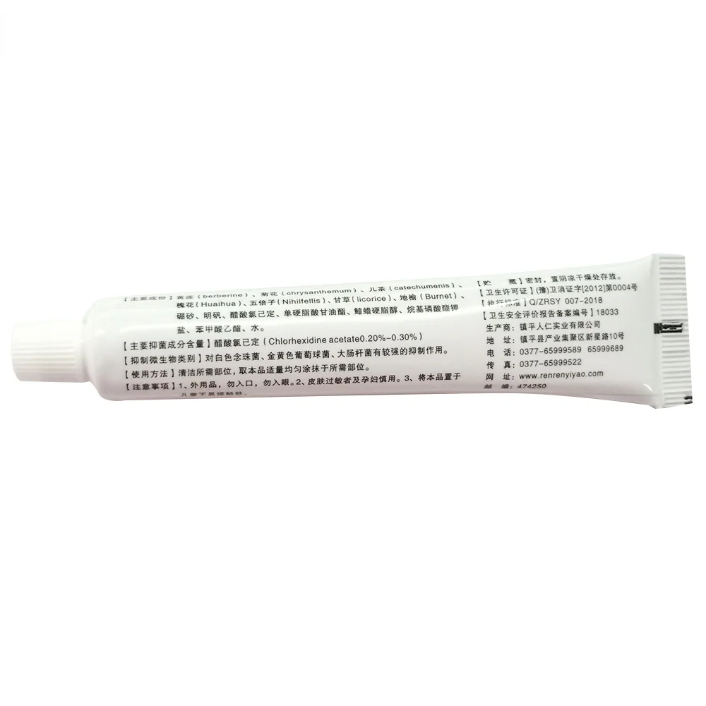 Основные компоненты: Coptis chinensis, Scutellaria baicalensis, Phellodendron chinensis, Sophora japonica, Ulmus pumila, Calamine, Borneol, глицерин, стеариновая кислота, вазелин, триэтаноламин, водный эфир. Ингибирование микроорганизмов имеет эффект ингибирования кожных инфекций, вызванных бактериями и грибками.