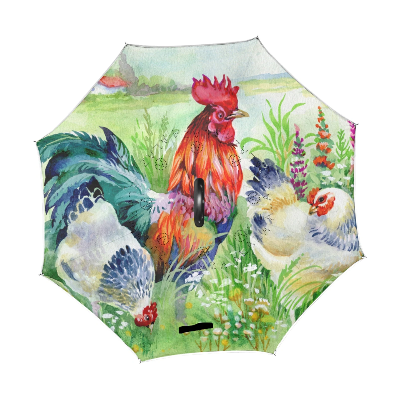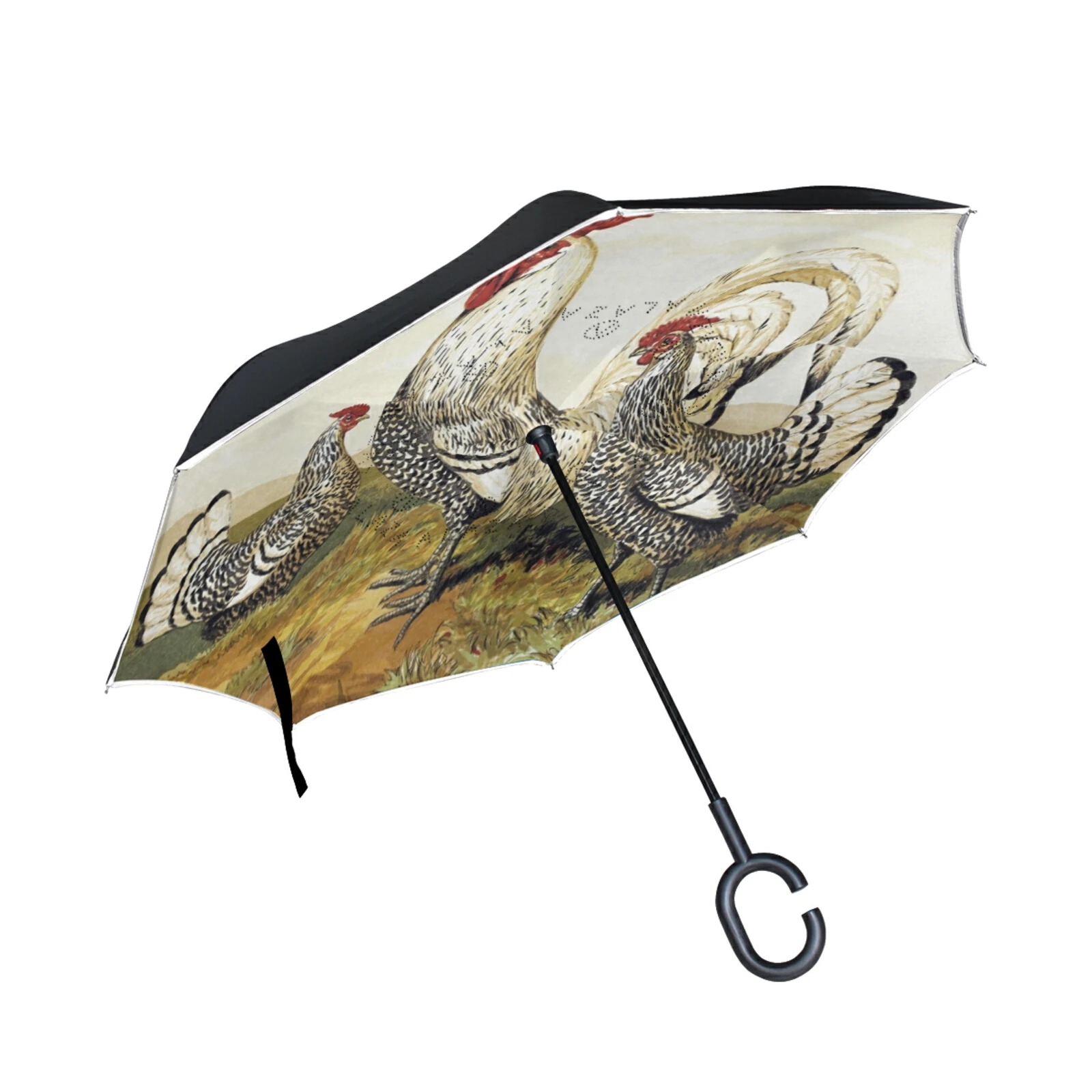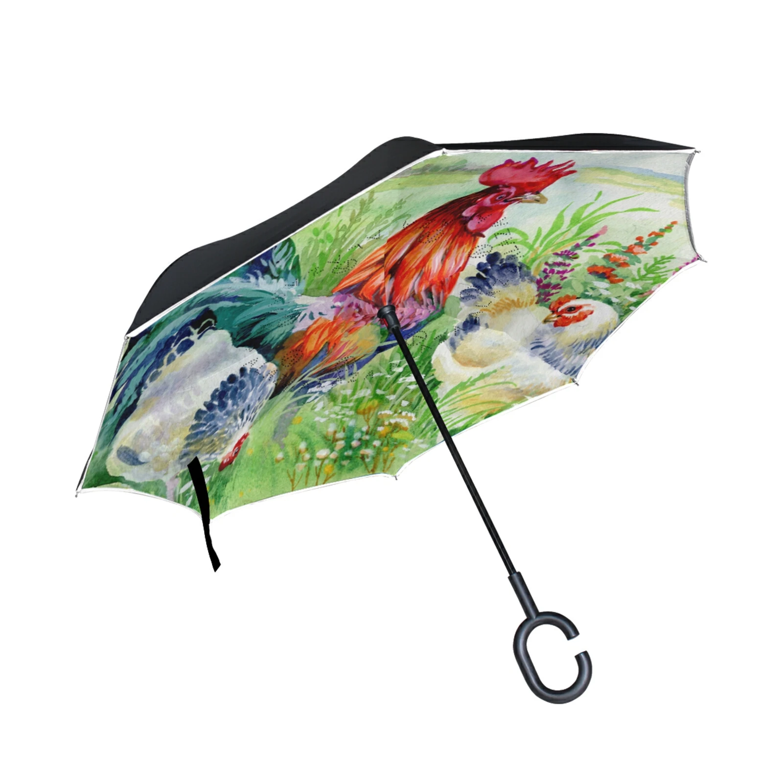 Петух Курица ветрозащитный обратный зонтик дождя женщин двойной слой перевернутый зонтик само стенд автомобиля светоотражающий зонтик