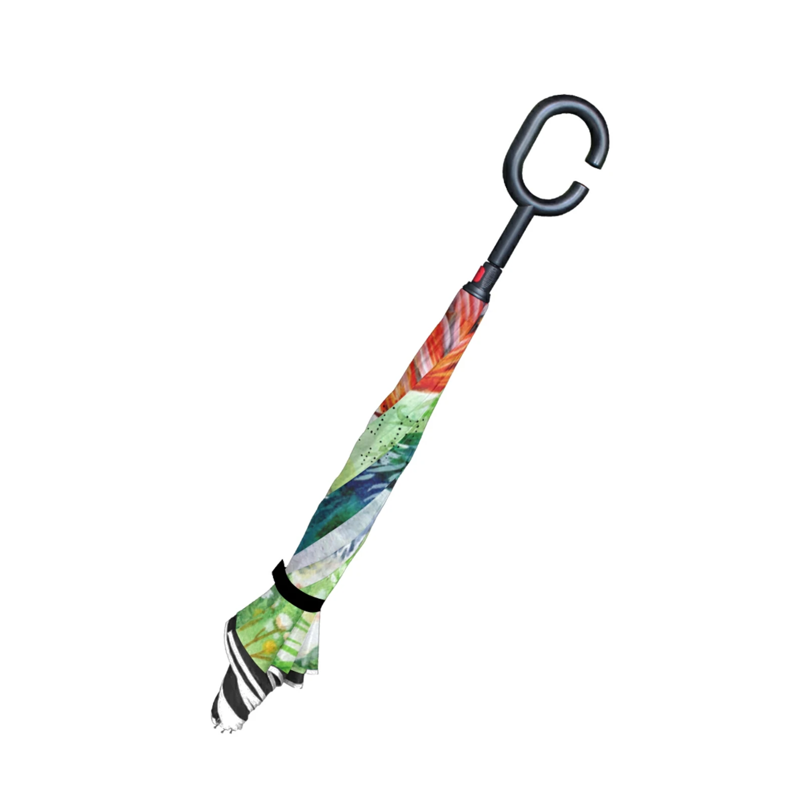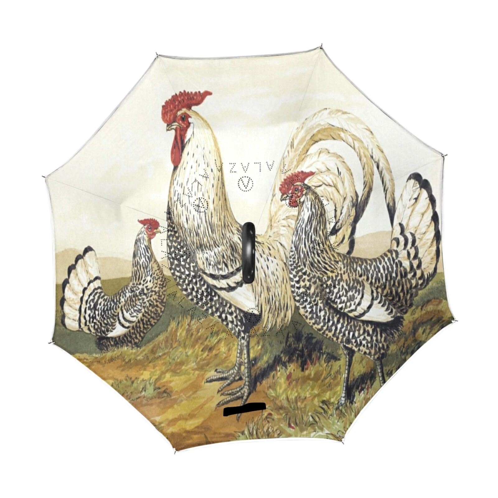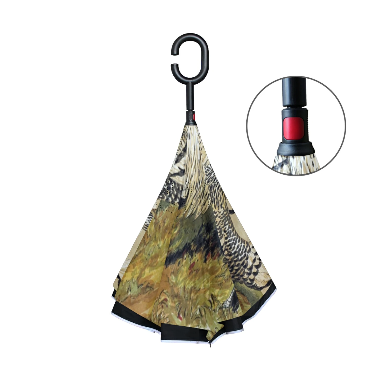 Петух Курица ветрозащитный обратный зонтик дождя женщин двойной слой перевернутый зонтик само стенд автомобиля светоотражающий зонтик