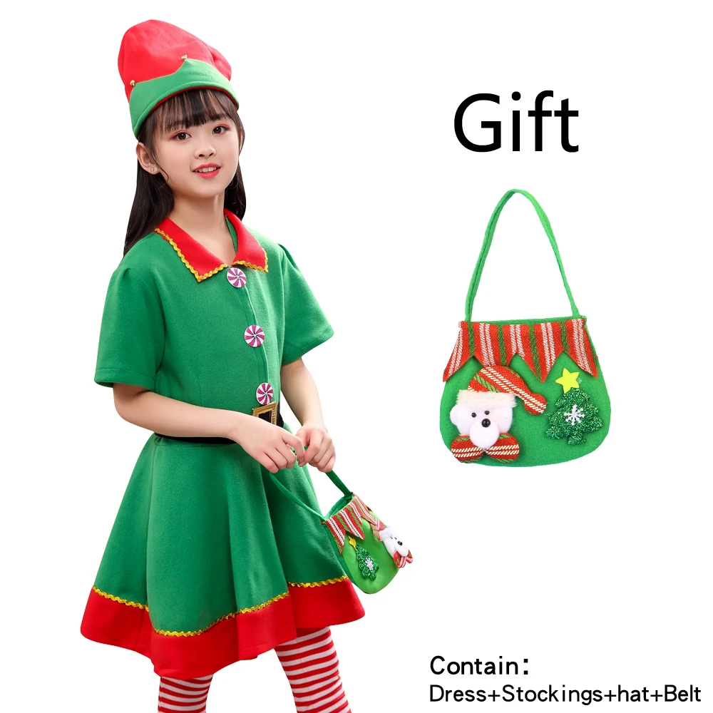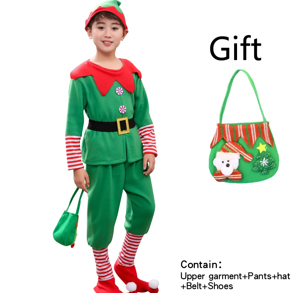 2021 зеленый эльф, Детский Теплый Рождественский костюм, одежда Сан...