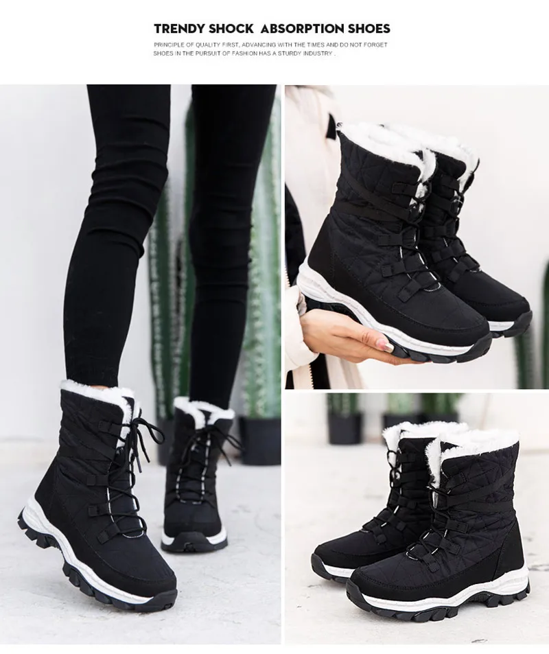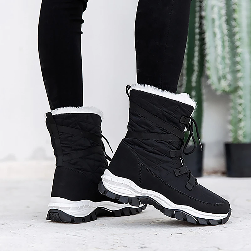 Теплые женские ботинки 2021 зимняя обувь модные короткие плюшевые женские зимние ботинки со шнуровкой женские ботинки до середины икры женская обувь женская модель 42