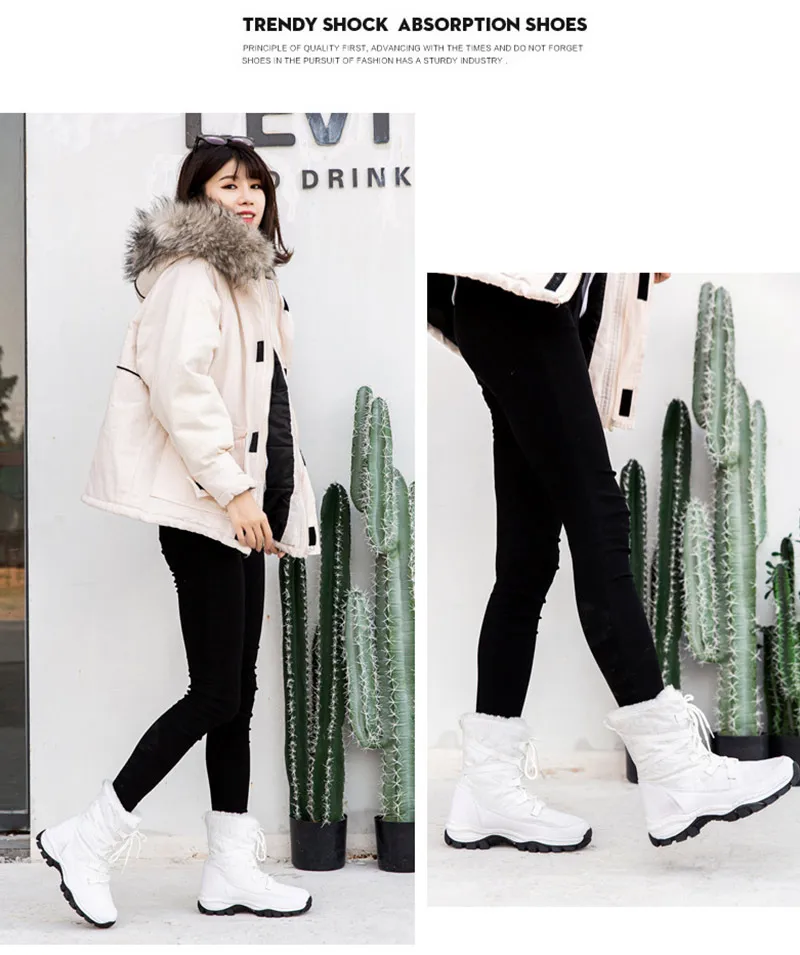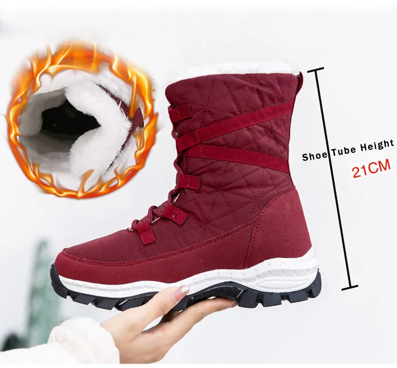 Теплые женские ботинки 2021 г. Зимняя обувь модные короткие плюшевые женские зимние ботинки до середины икры на шнуровке женская обувь размера плюс 42