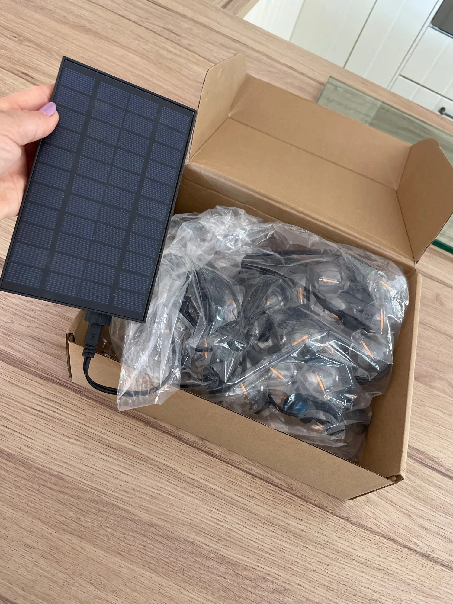 Замечательная гирлянда. Красивая, удобная, экономичная, управляемая с пульта с возможностью регулировки яркости. Заряжается как от солнечной батарейки, так и от usb. Сама выключается, если включить другой свет, либо взойдёт солнце. Просто невероятная! Я очень довольна покупкой. Всё пришло целое, хорошо упакованное