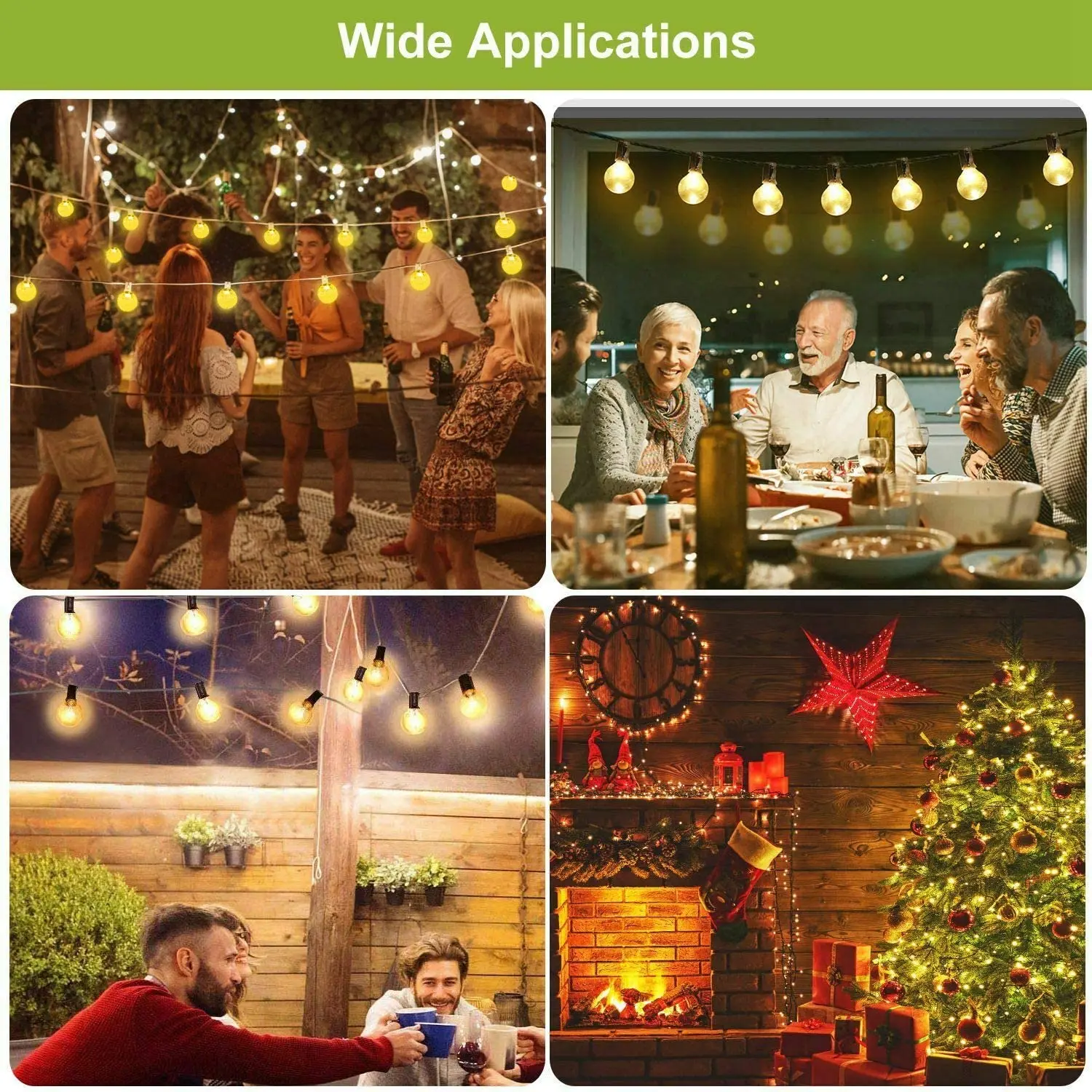 СВЕТОДИОДНАЯ Гирлянда G40 на солнечной батарее, уличное освещение для внутреннего дворика, водонепроницаемые подвесные светильники с защитой от ударов, Рождество
