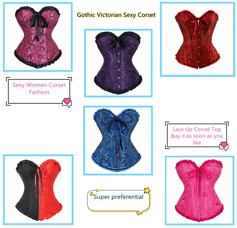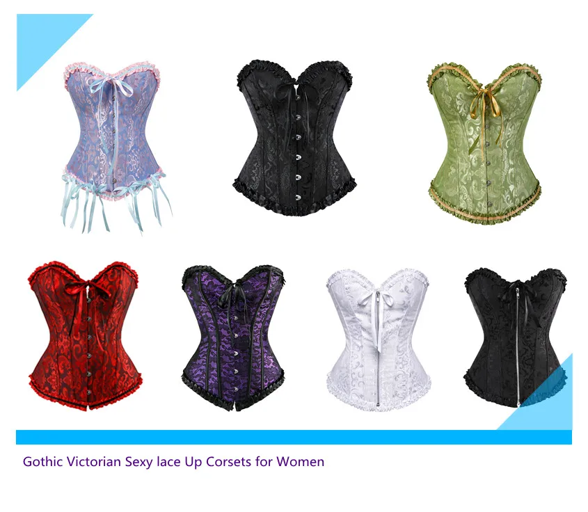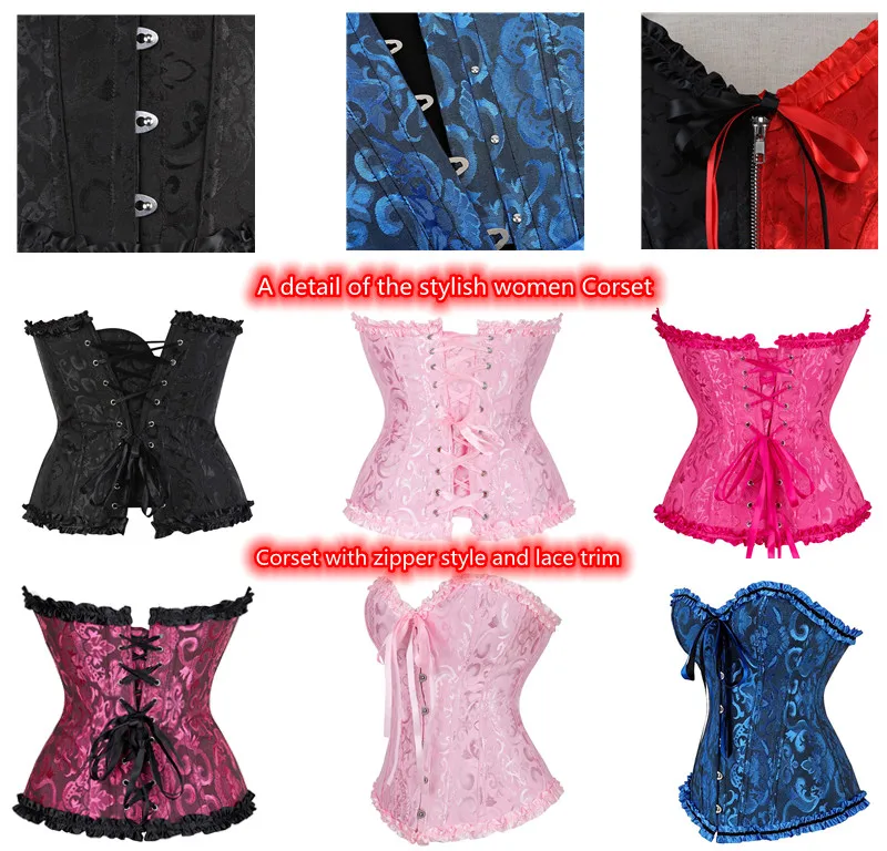 Attributecorsets and bustiers shapewear lingerie overbust corset Plus Size Brocade Women Sexy Vintage Halloween Costume Red Black Green Pink Sexy Lace Plus Size Erotic Zip Floral Women Bustier Corset