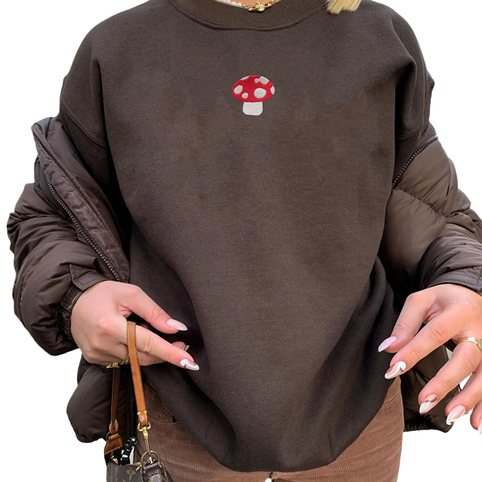 Женские толстовки с капюшоном на весну и осень, милый флисовый пуловер с длинным рукавом и принтом в виде грибов, корейский Свободный коричневый пуловер, свитшоты