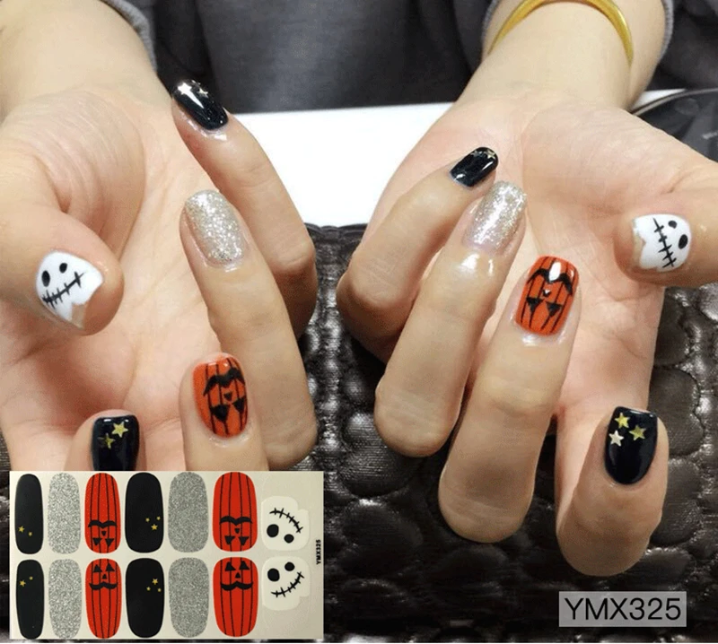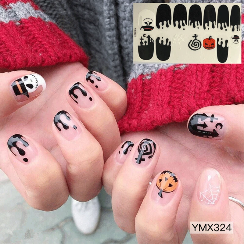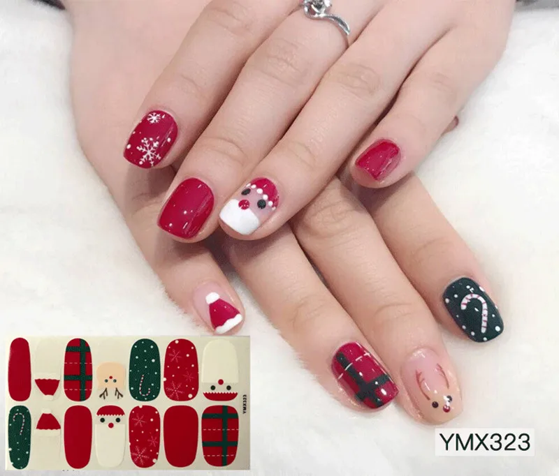 14 наклеек на РождествоХэллоуин, наклейки для ногтевого дизайна с полным покрытием, обертывания снежинками, водонепроницаемые полные творческие аксессуары сделай сам для маникюра