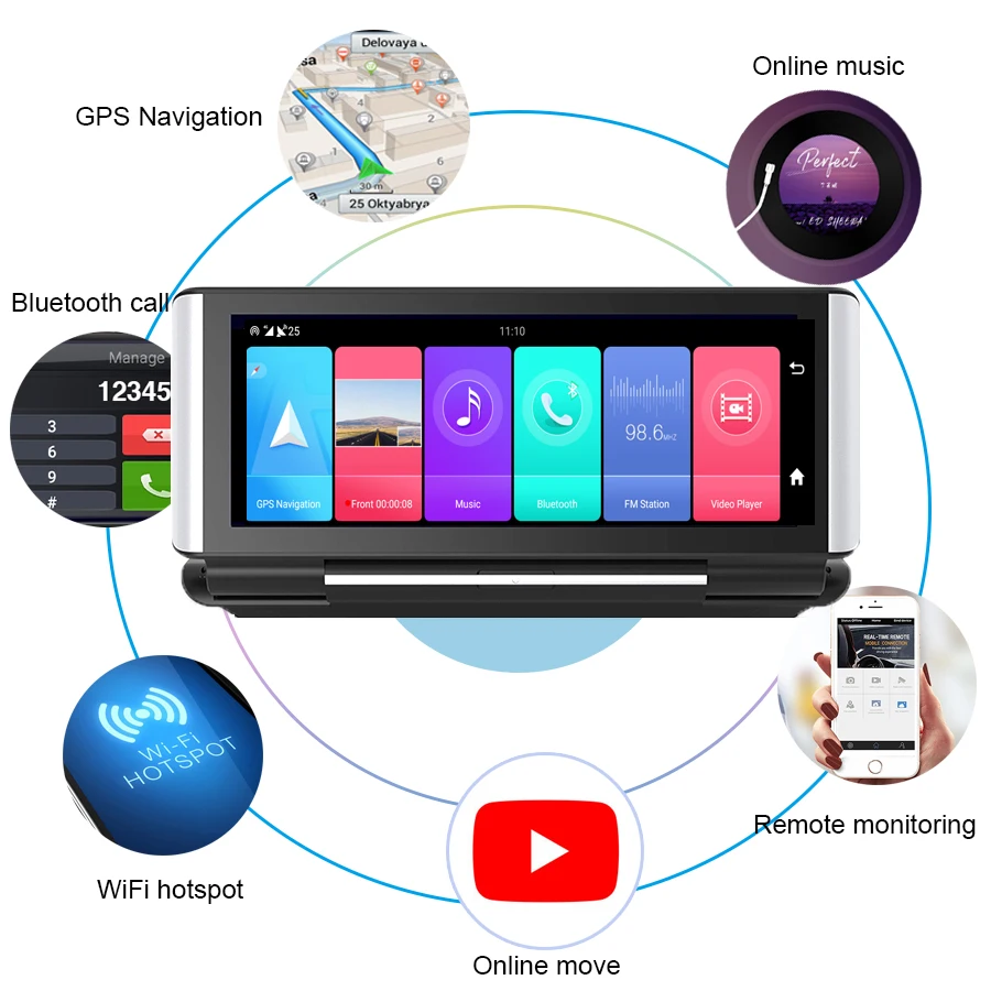 7-дюймовый автомобильный видеорегистратор ADAS, видеорегистратор на Android 8,1 с двумя камерами и циклической записью, видеорегистратор с приборной панелью и GPS-Навигатором, видеорегистратор