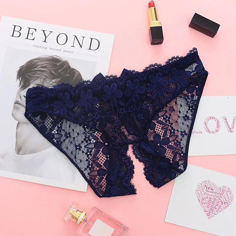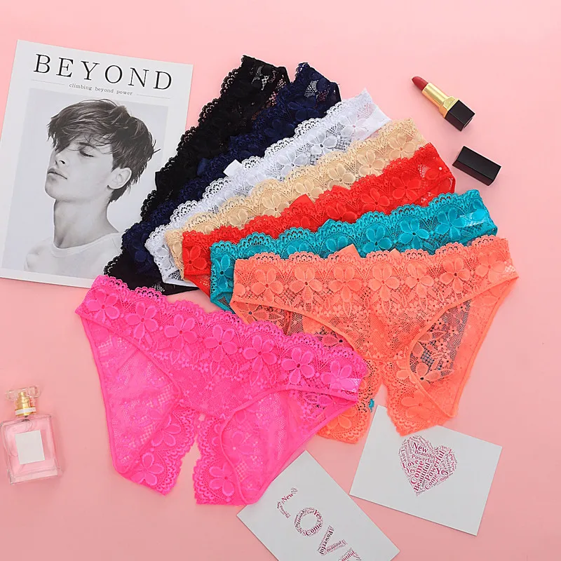 Новое женское сексуальное нижнее белье, нижнее белье с открытой промежностью, женские кружевные трусики с вырезами и бантом