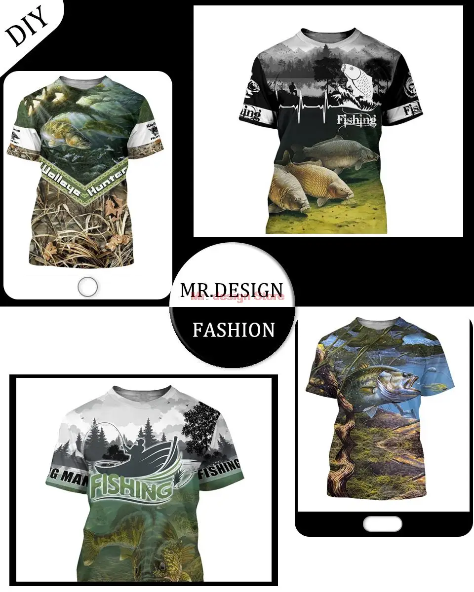 Новая летняя мужская футболка с принтом для рыбалки, уличная мода, с круглым вырезом и короткими рукавами, Мужская футболка большого размера, мужская одежда