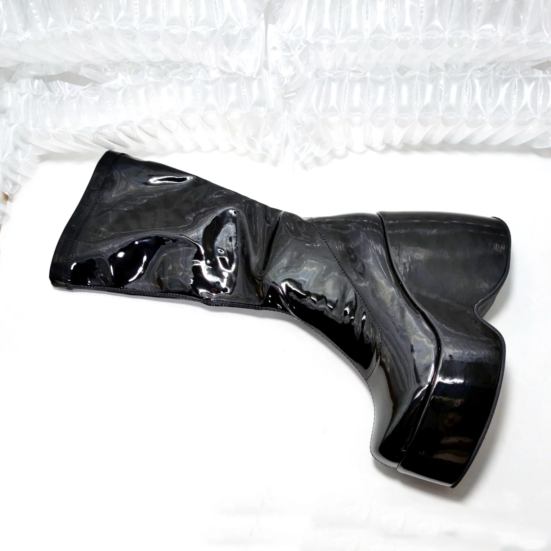 Дизайнерские Сапоги до колена из лакированной кожи на толстой платформе, Женская эластичная обувь на высоком каблуке, Женская Повседневная Уличная обувь, женская длинная обувь