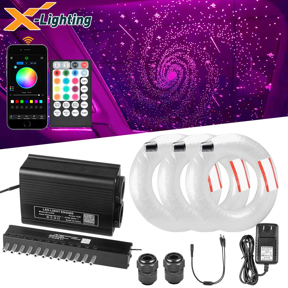 32 Вт RGBW двойная головка светодиодный волоконно-оптический двигатель Smart AppRF контроль Звездный эффект комплект освещения с метеоритом для стрельбы