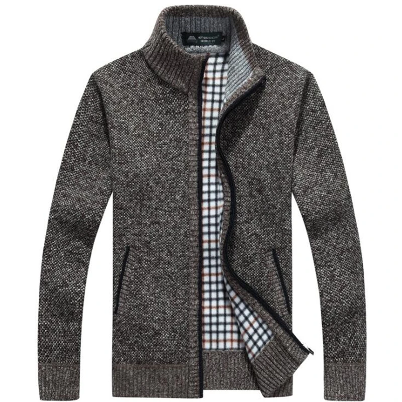 Новая осенне-зимняя мужская теплая кашемировая повседневная шерстяная приталенная флисовая куртка на молнии мужское пальто платье трикотажная мужская одежда