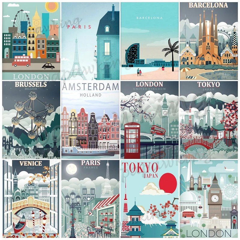 Алмазная живопись 5D с марокканским путешествием, полное Алмазная вышивка, живописный Лондон, сделай сам, японская мозаика, стразы, настенное искусство